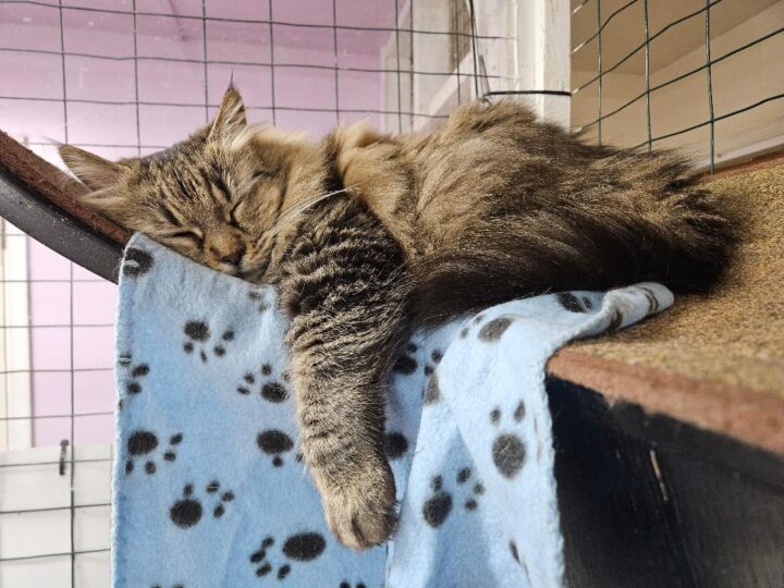 One of the senior felines to benefit from this much-needed support is FOHA’s own Bette Boo, a soft, sweet, lovely tabby cat awaiting adoption into her forever home. Bette is a big-hearted, big-voiced, and big-fluff kinda gal. She used to sleep curled up beside her human dad every night, and she loved him with her whole soul. After he passed away, she lost her beloved person, but remains hopeful that she’ll find love again.