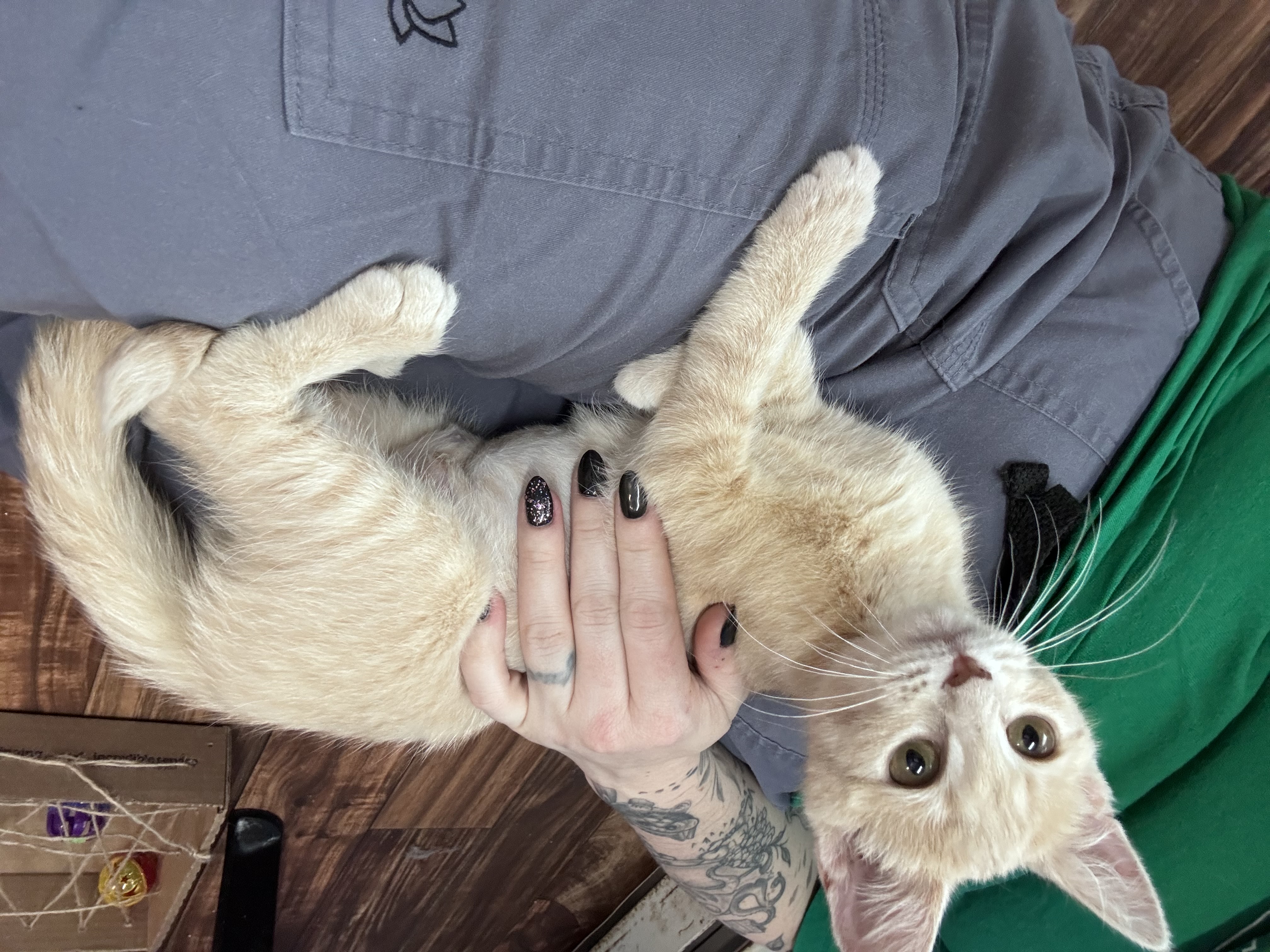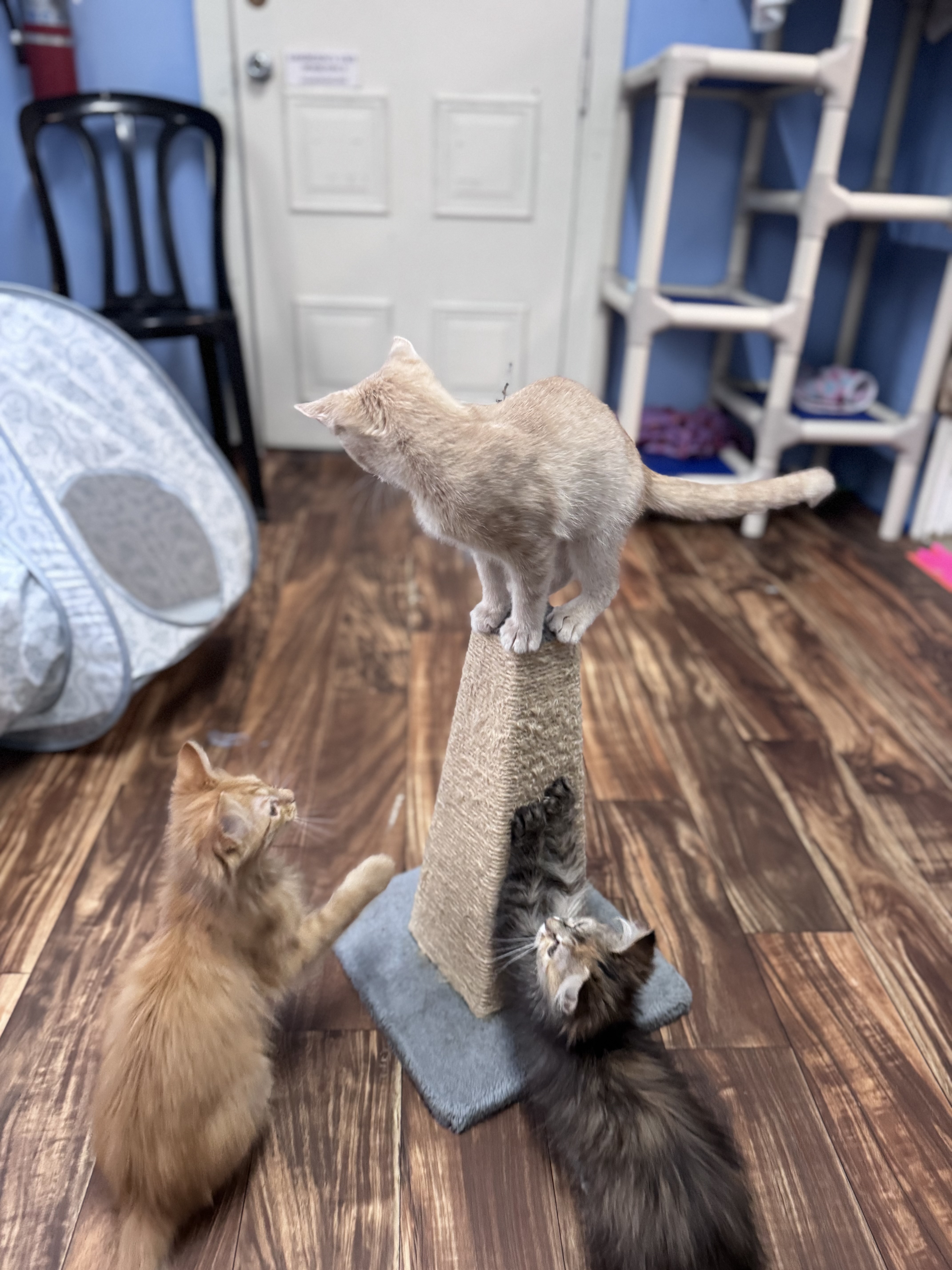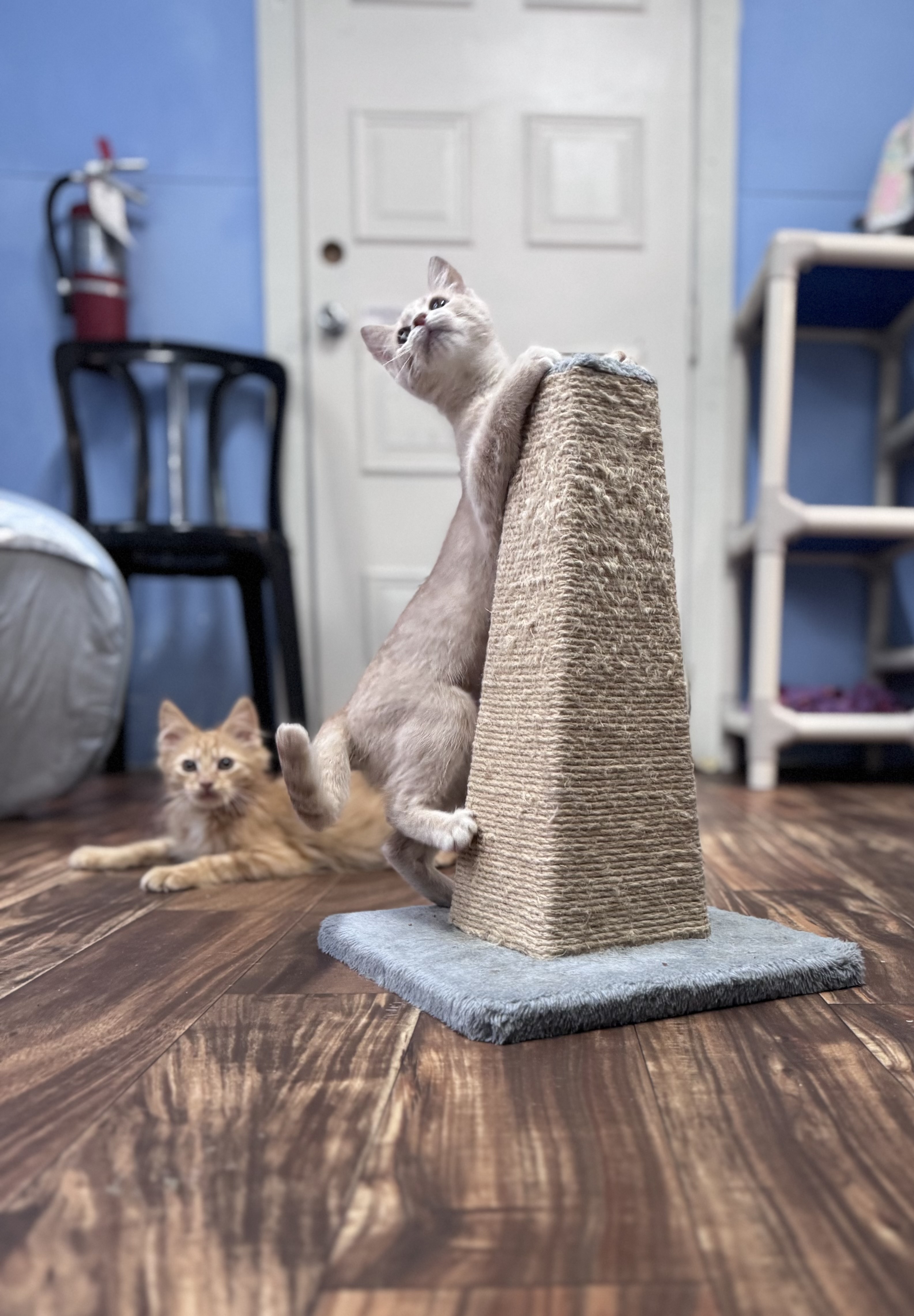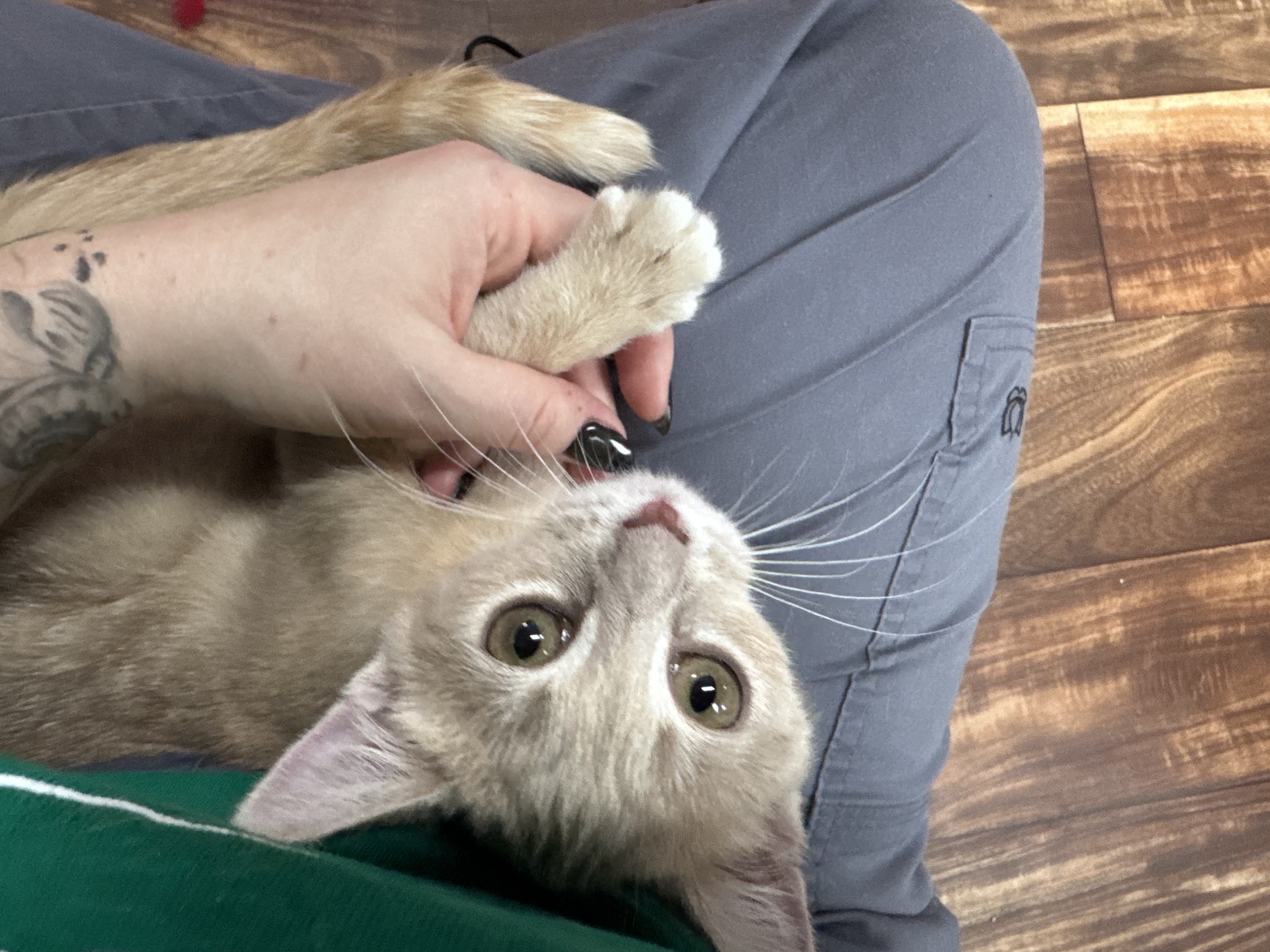 I do best with a social cat companion! Kittens under 6 months old at FOHA are required to go home with another kitten or to a home with another social cat. This is prime time for me to learn everything it means to be a cat.