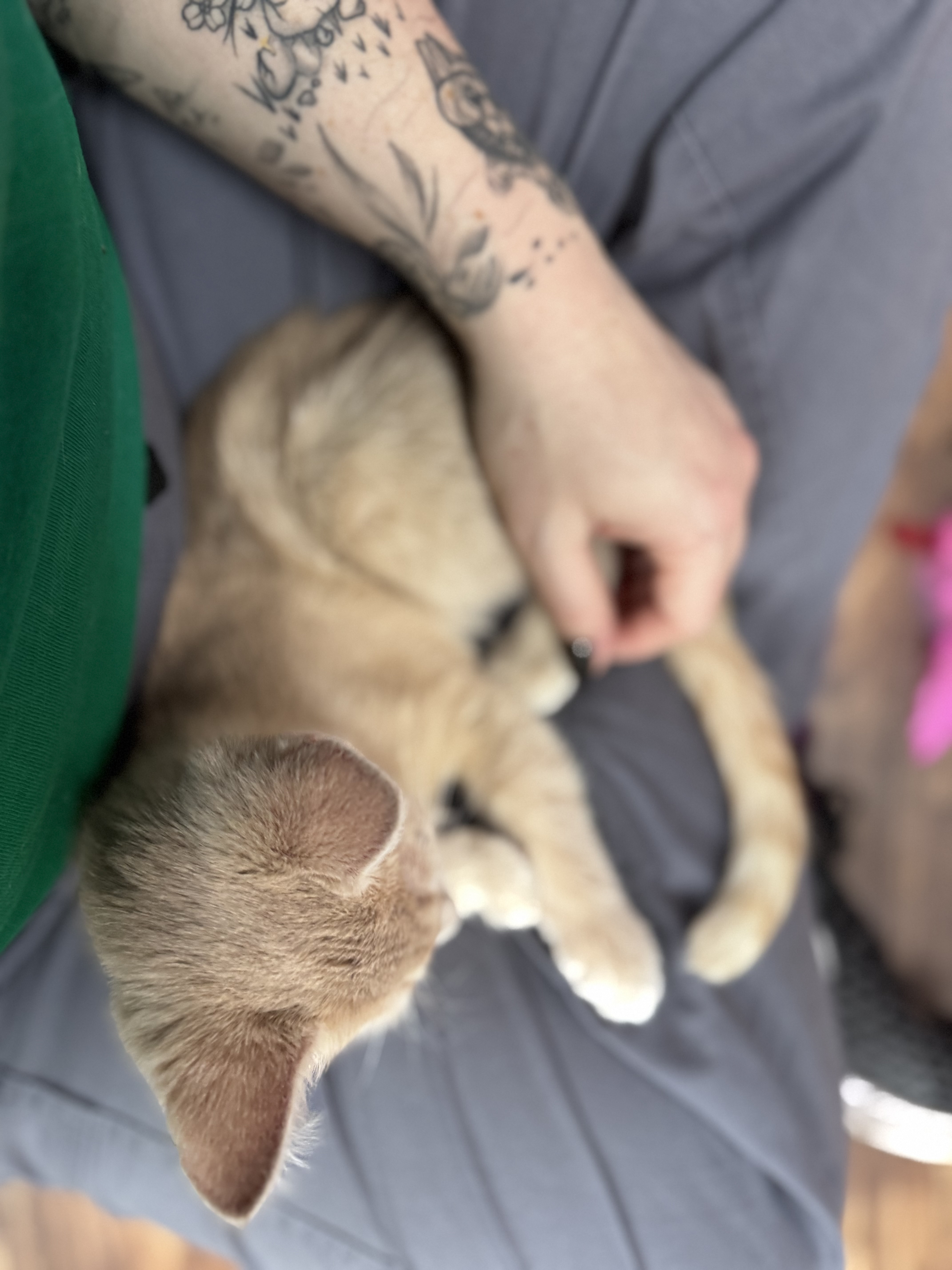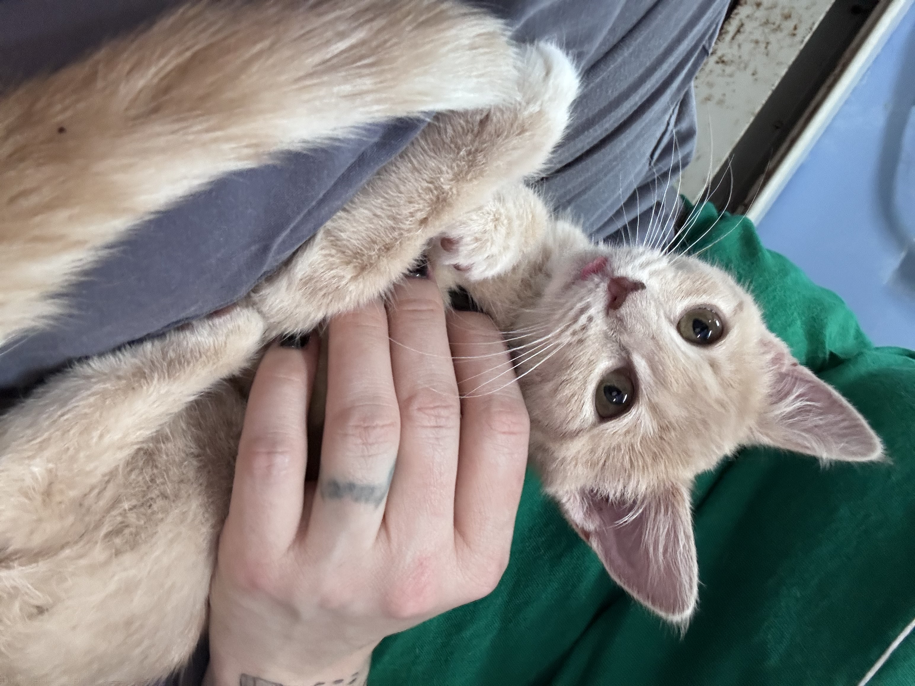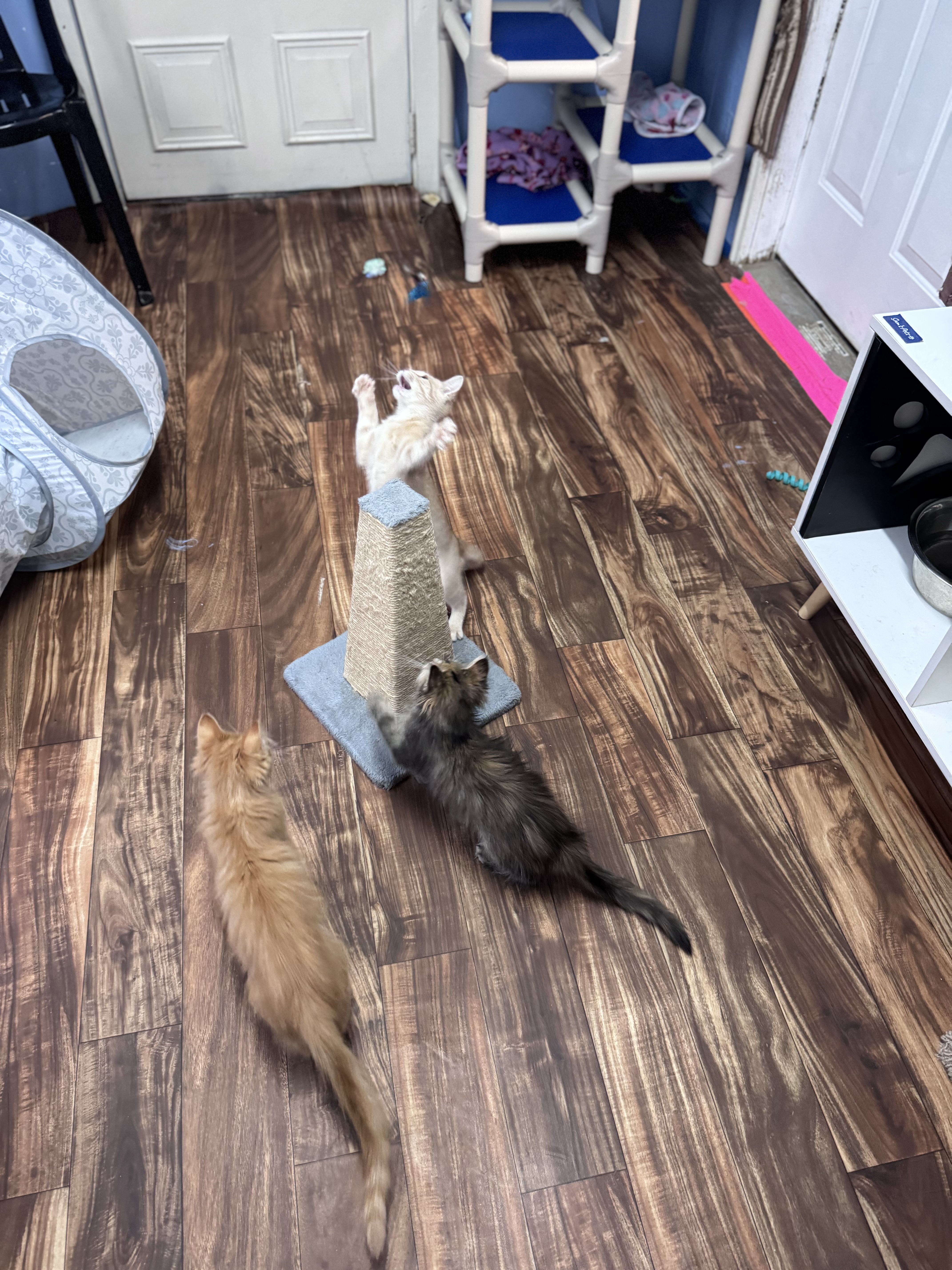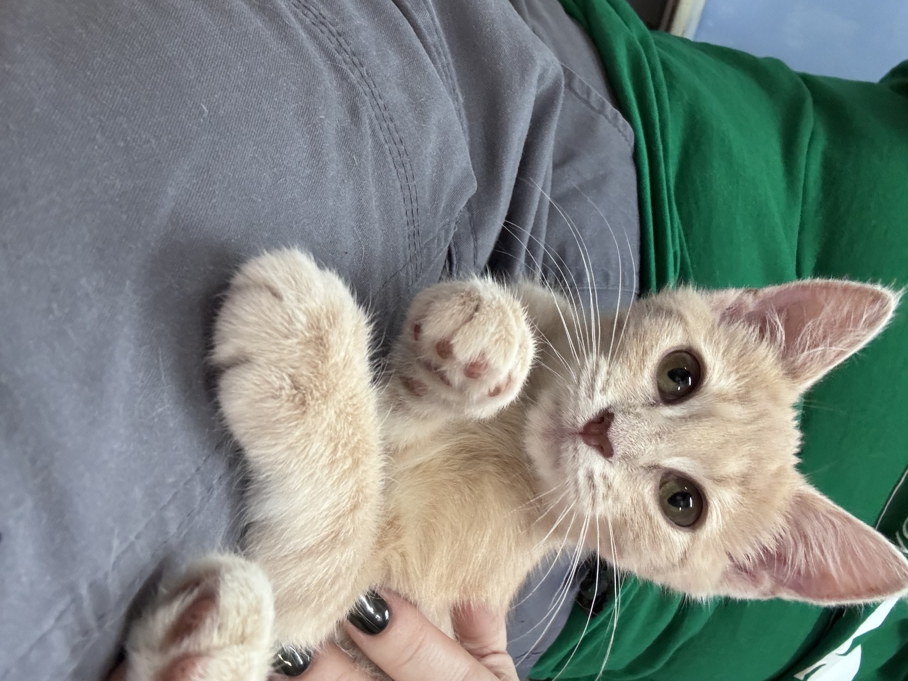 I do best with a social cat companion! Kittens under 6 months old at FOHA are required to go home with another kitten or to a home with another social cat. This is prime time for me to learn everything it means to be a cat.