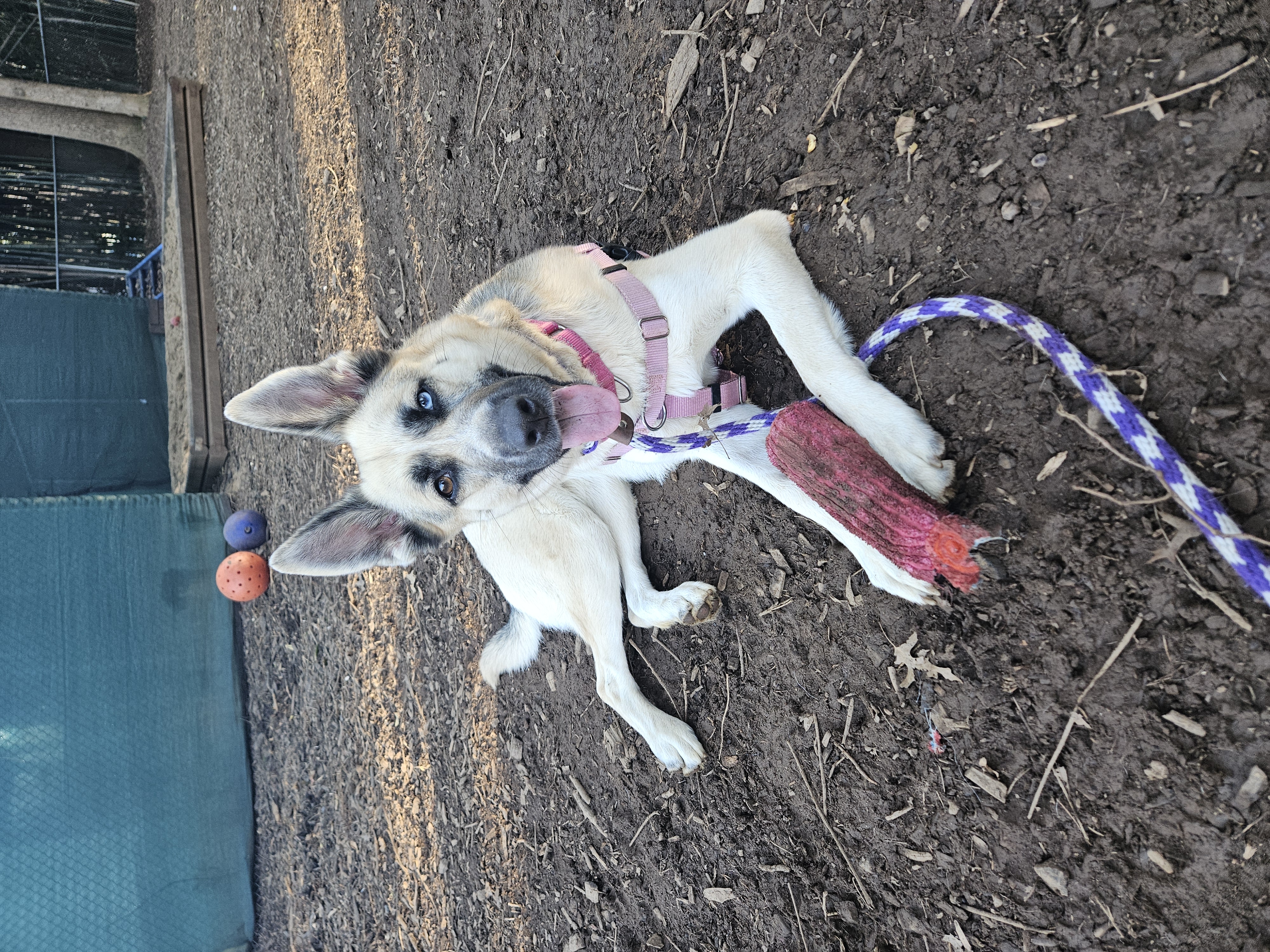 Despite my past, I’m a smart, energetic, athletic, and deeply loyal girl. I love toys of all kinds, enjoy playing with other dogs, and I learn quickly—especially when high-value treats are involved. I’m housebroken and have done well in a home without needing a crate. After years of sleeping on hard ground, I now really appreciate soft beds and cozy couches, especially if I can snuggle up next to my person.