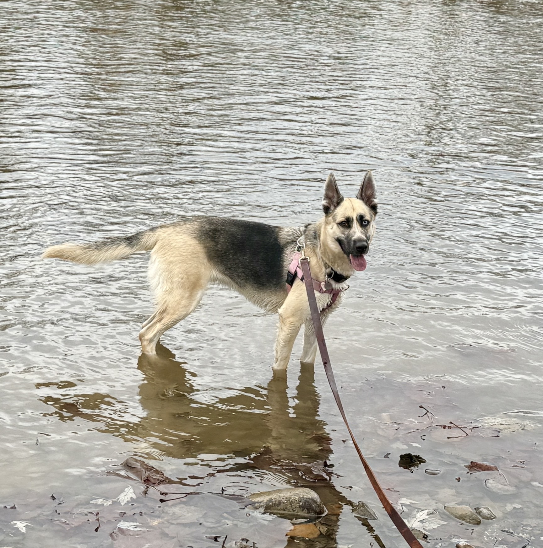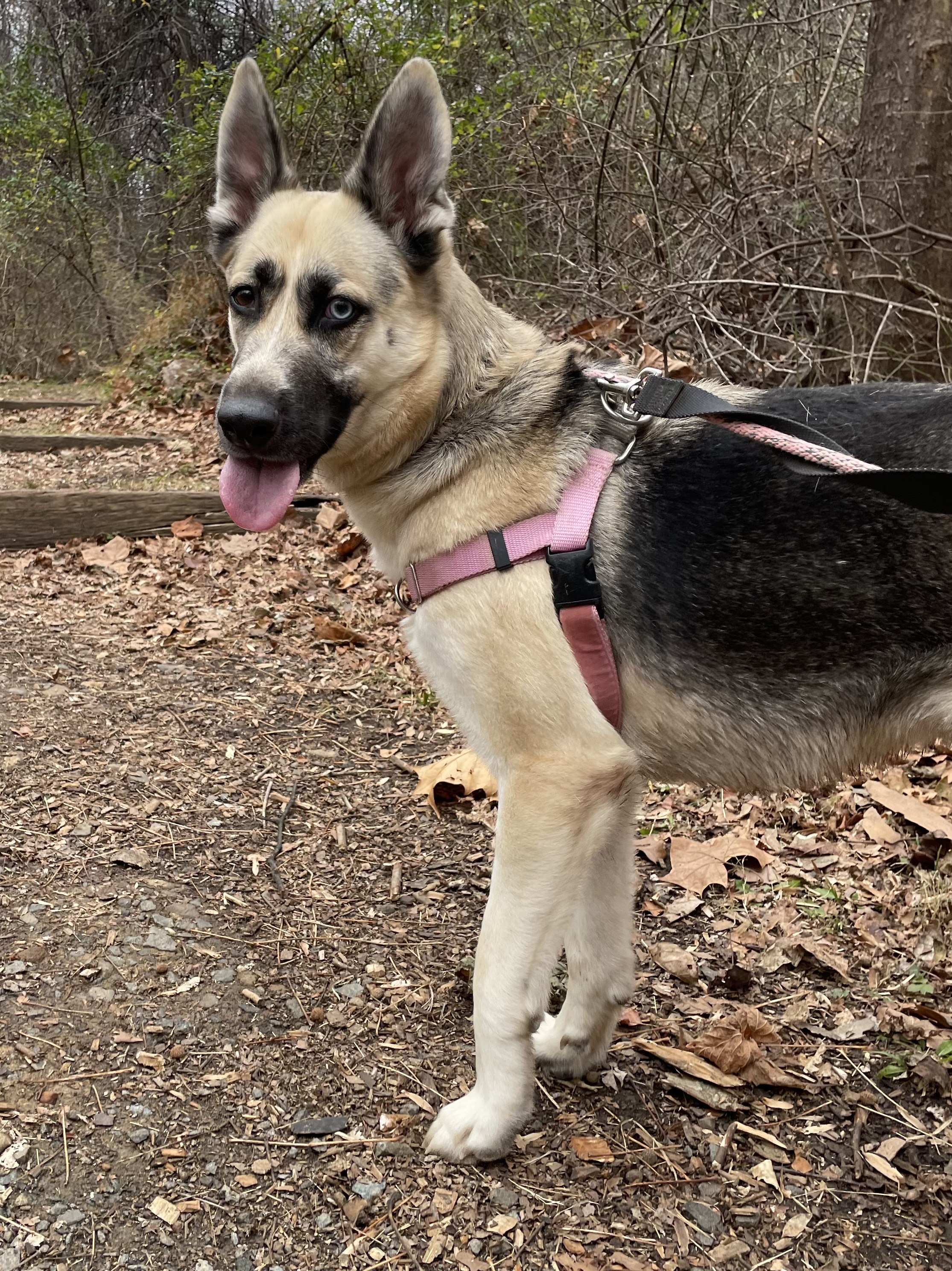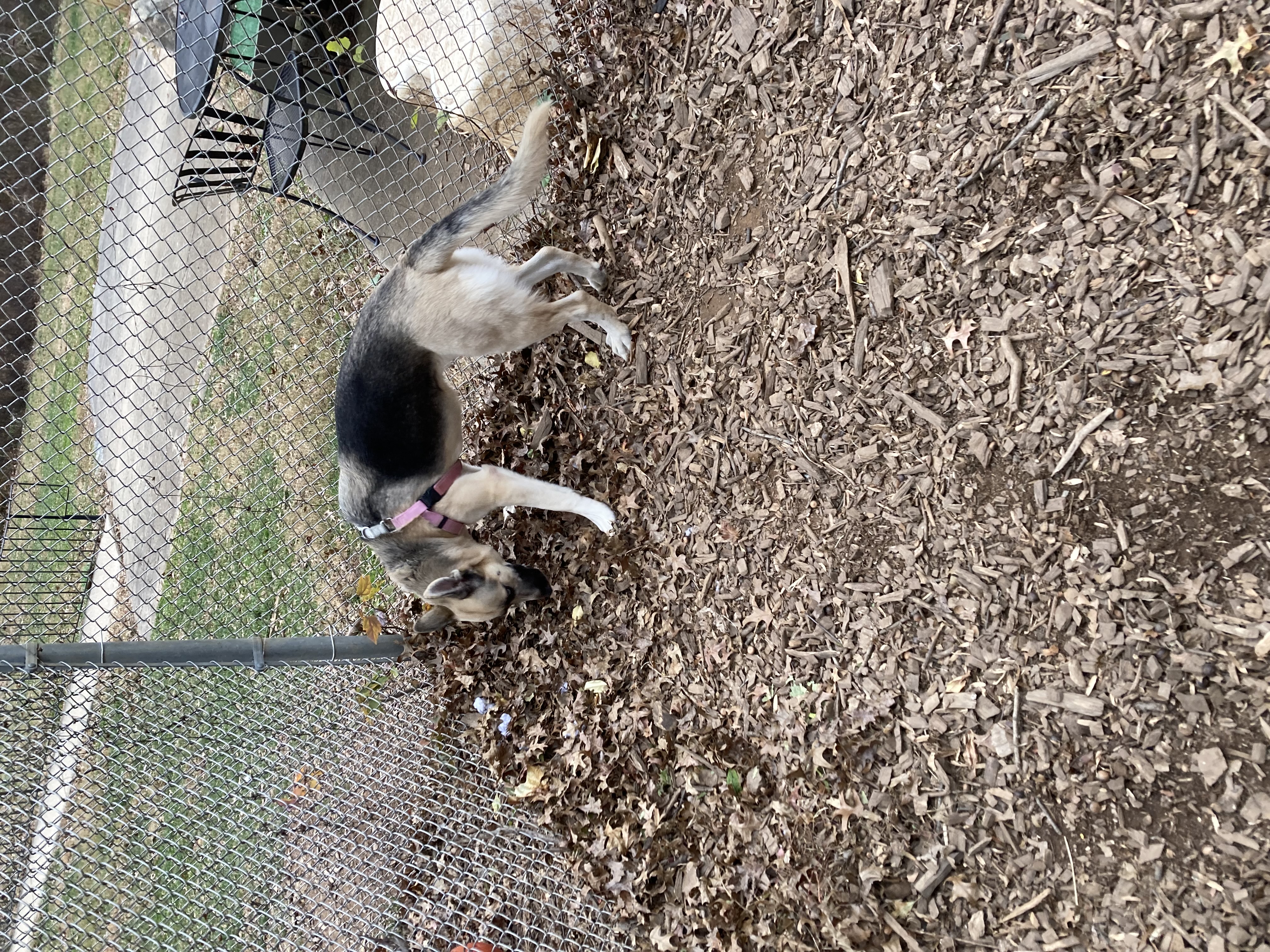 Bonnie would flourish in an active home with a family who will provide her with exercise, mental stimulation, and plenty of love. She’d love a fenced yard where she can run. Another confident dog companion would be a bonus. She loves an adventure and has enjoyed hiking and splashing around at Shenandoah National Park.