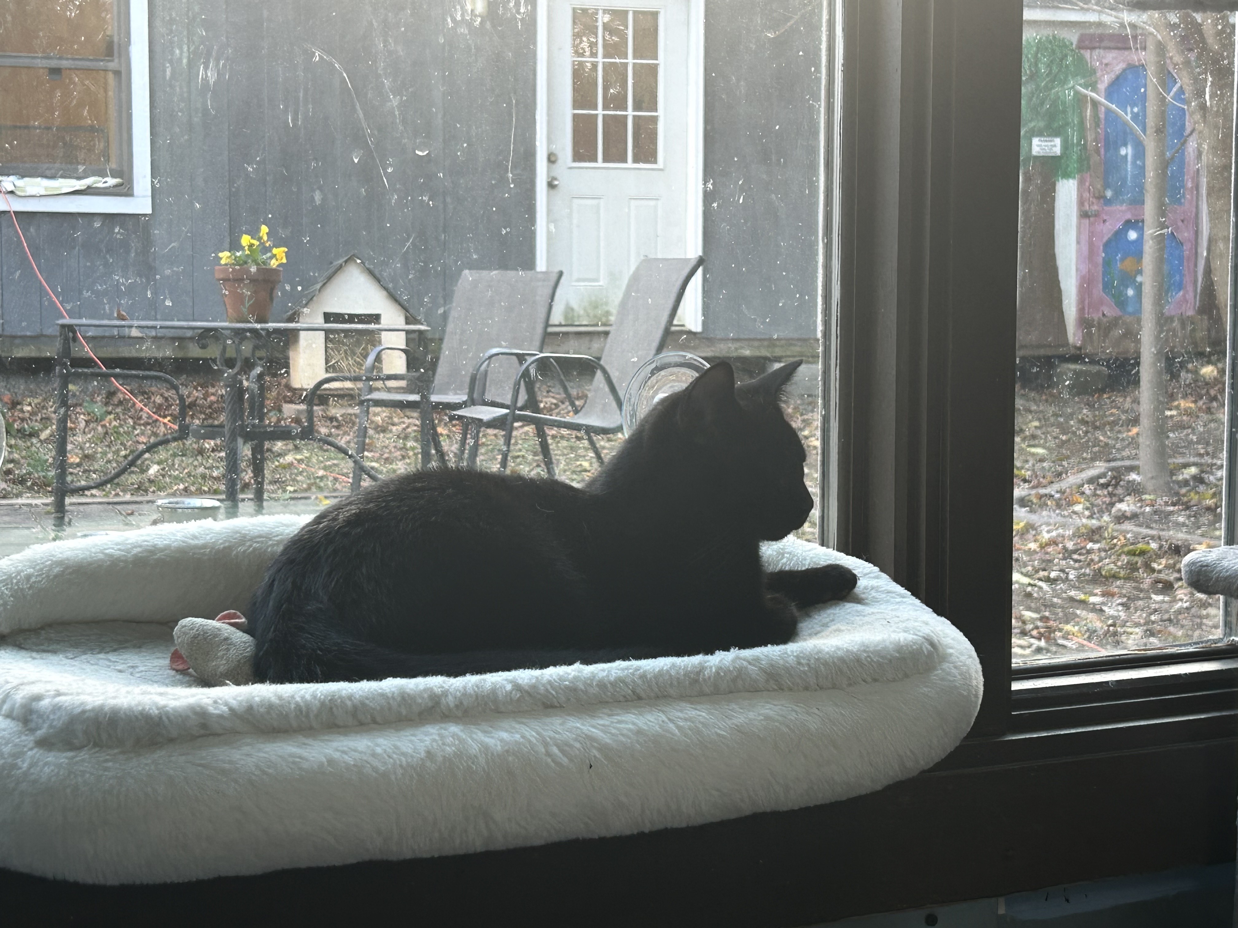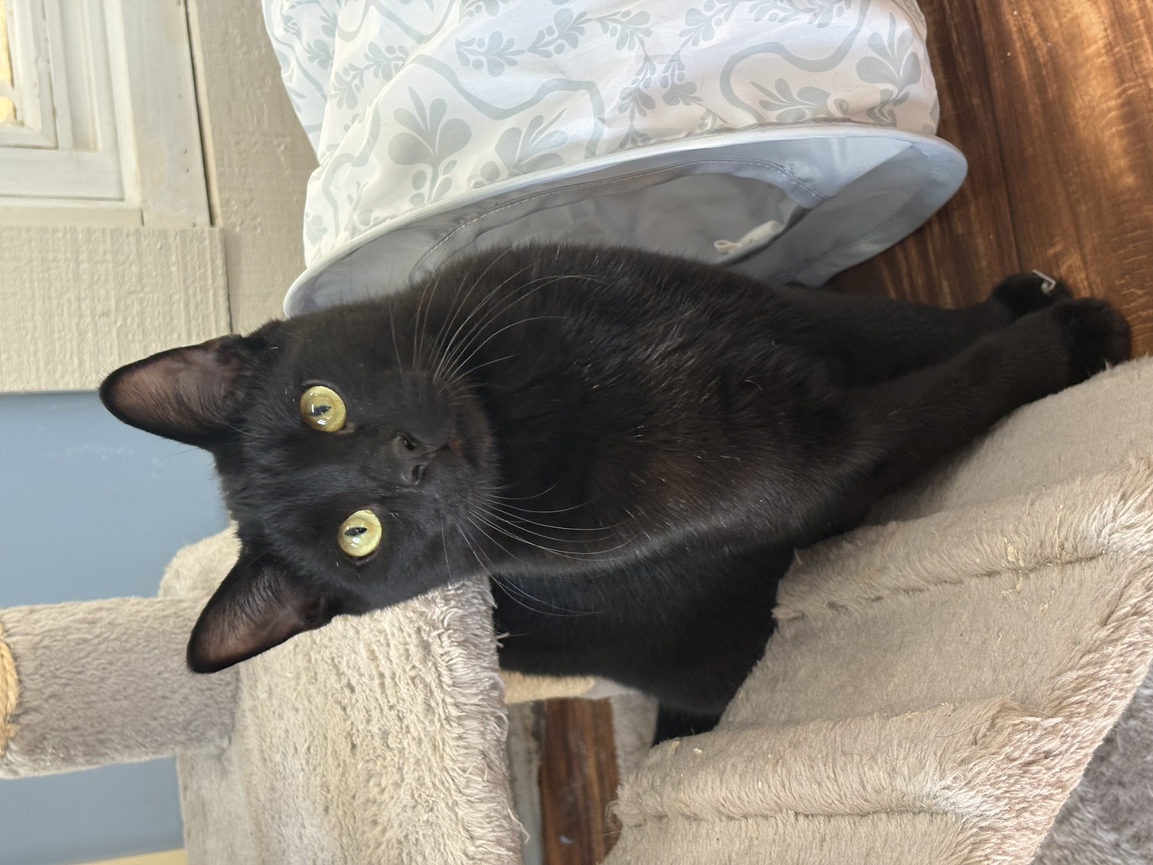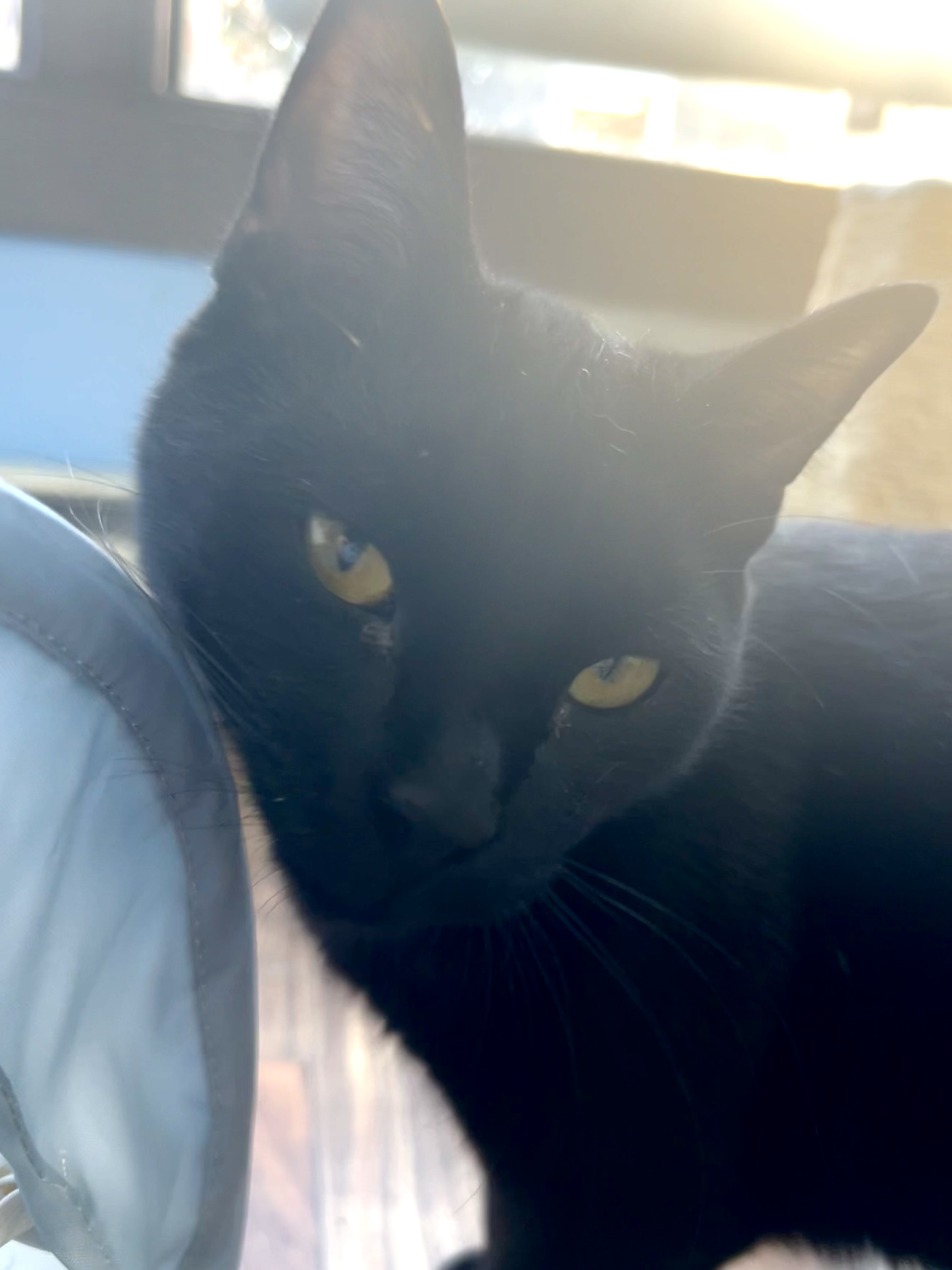 Hi there, I’m Boo, a sweet black cat with a shy heart and a curious soul. I was found abandoned at the same Airbnb as my friend Coraline, and I’m still learning that people can be kind and that home can mean safety. I might startle easily (it’s in the name, after all!), but I’m also brave in my own quiet way. Every day, I take another step toward trusting and loving the humans around me.