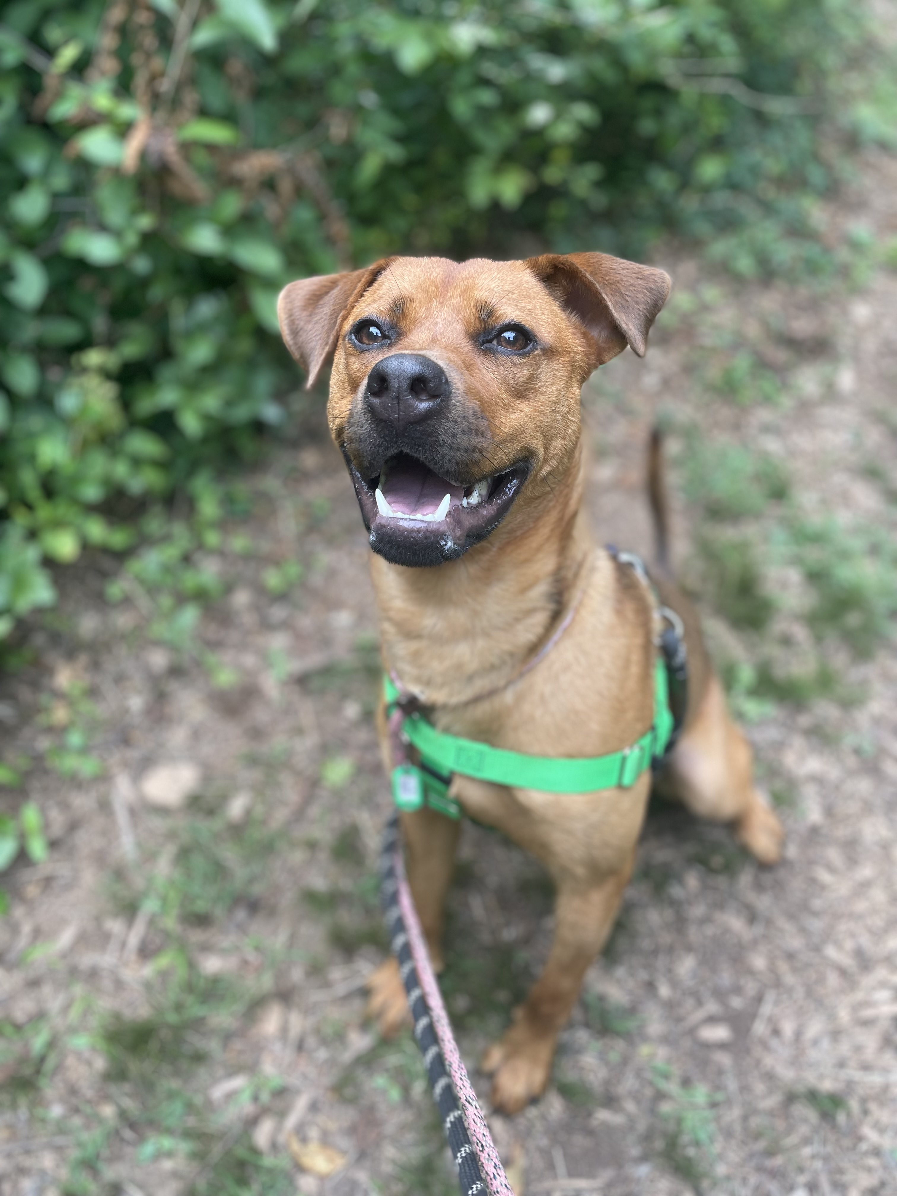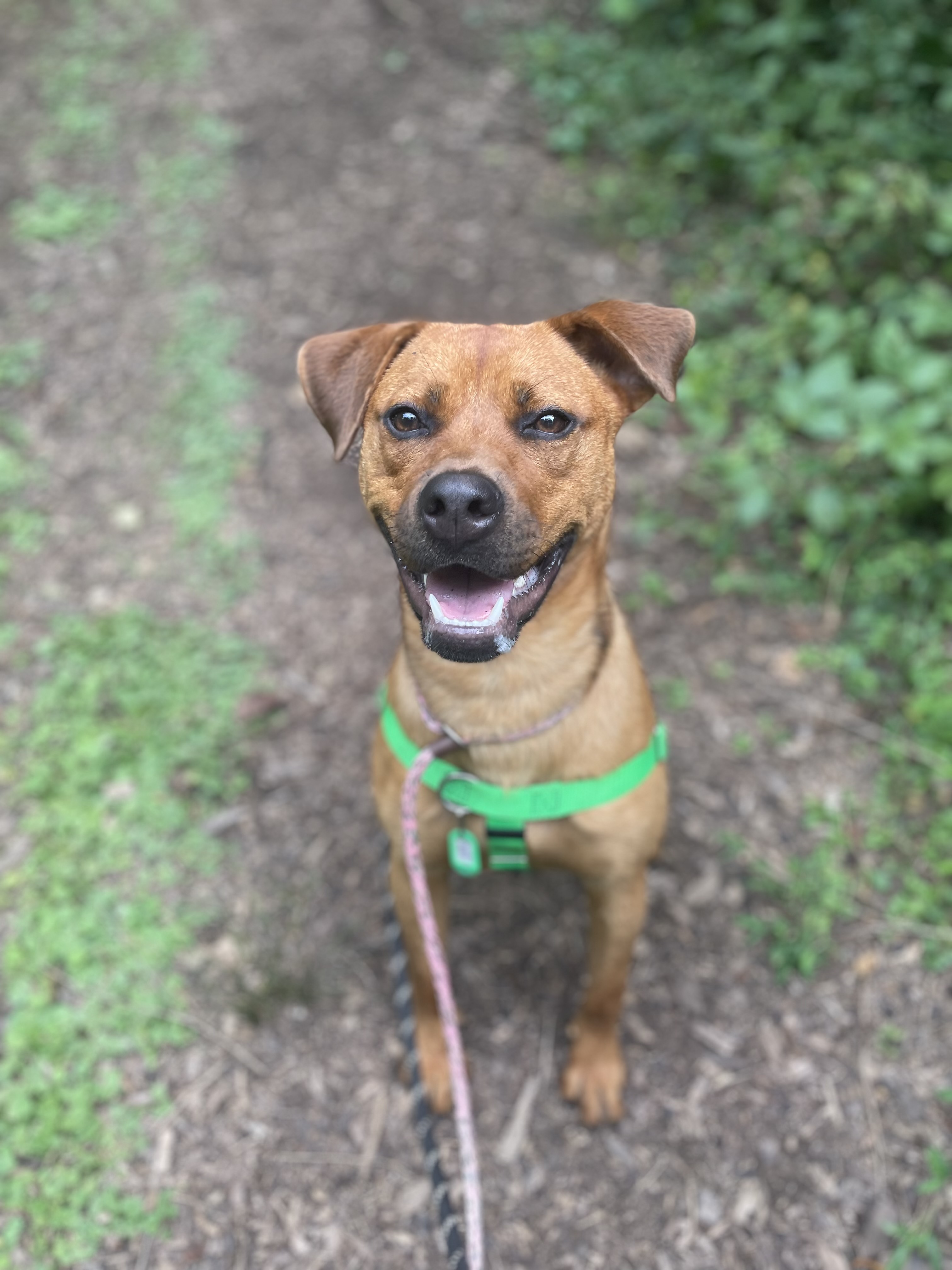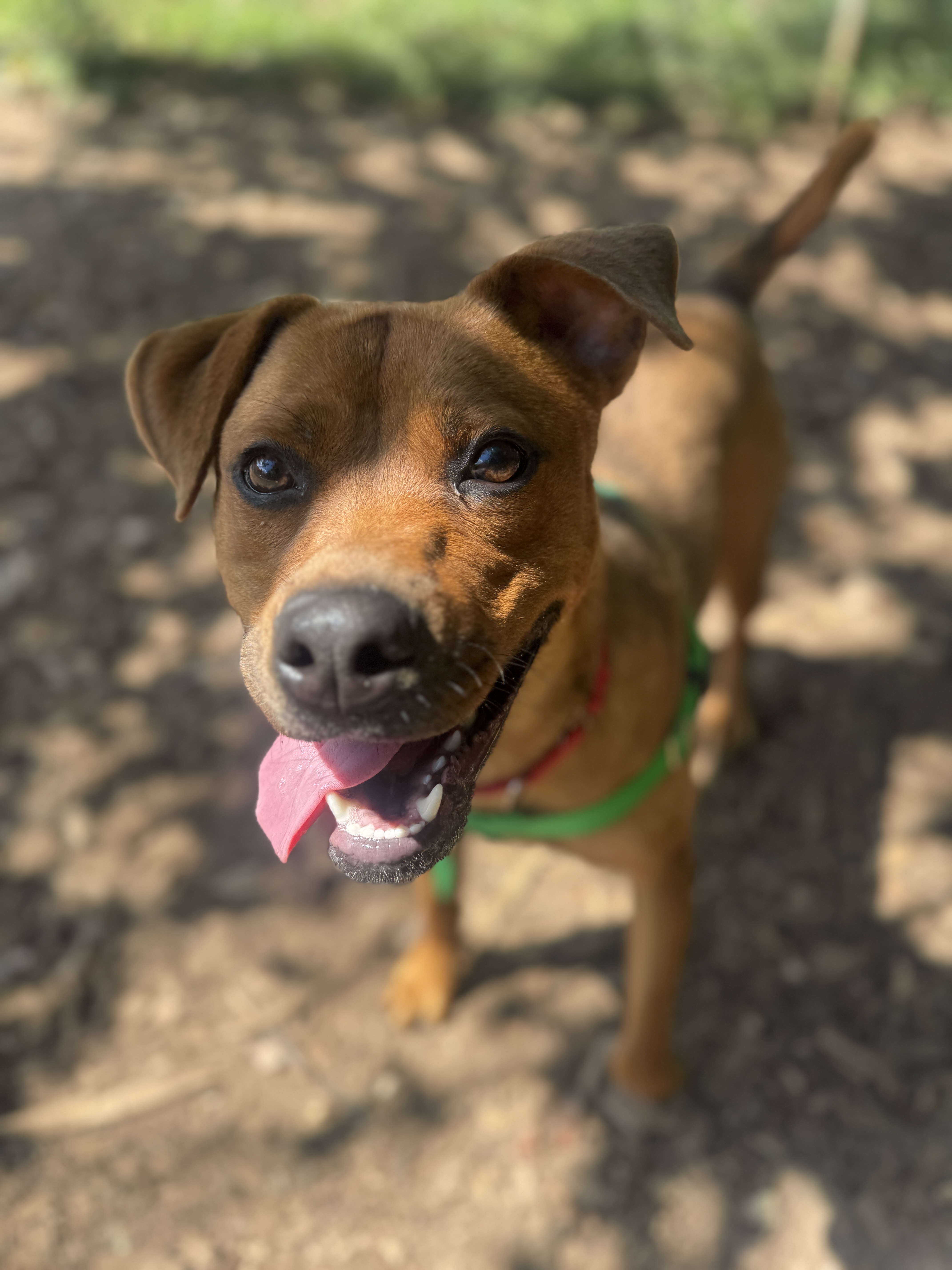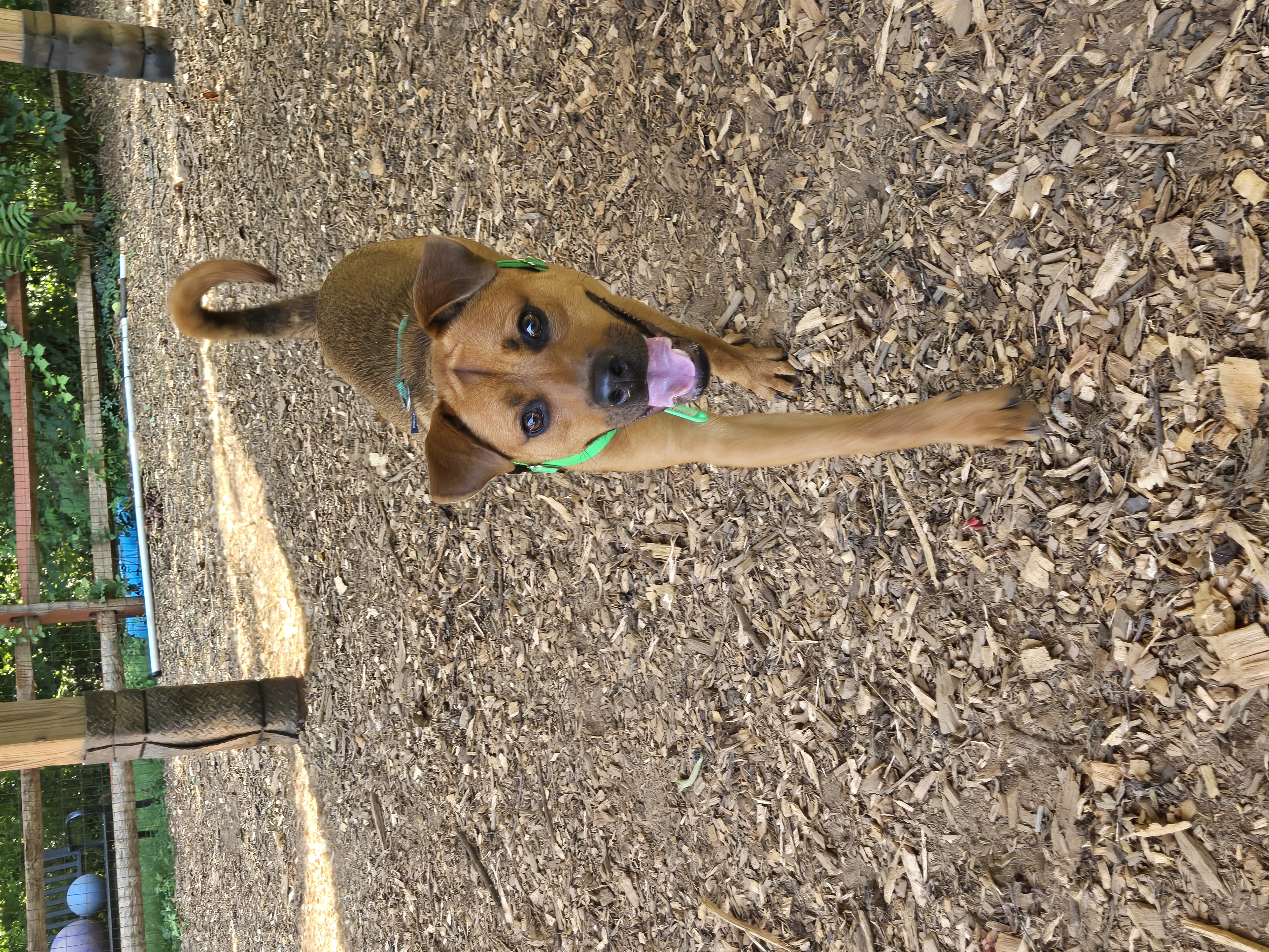 I’ve played well with other dogs at FOHA and tend to do best with pups who give me space and respect my energy. My play style is on the rough-and-tumble side, so I’d thrive with a tolerant, playful companion or as your one-and-only if you’re looking for a high-energy sidekick.