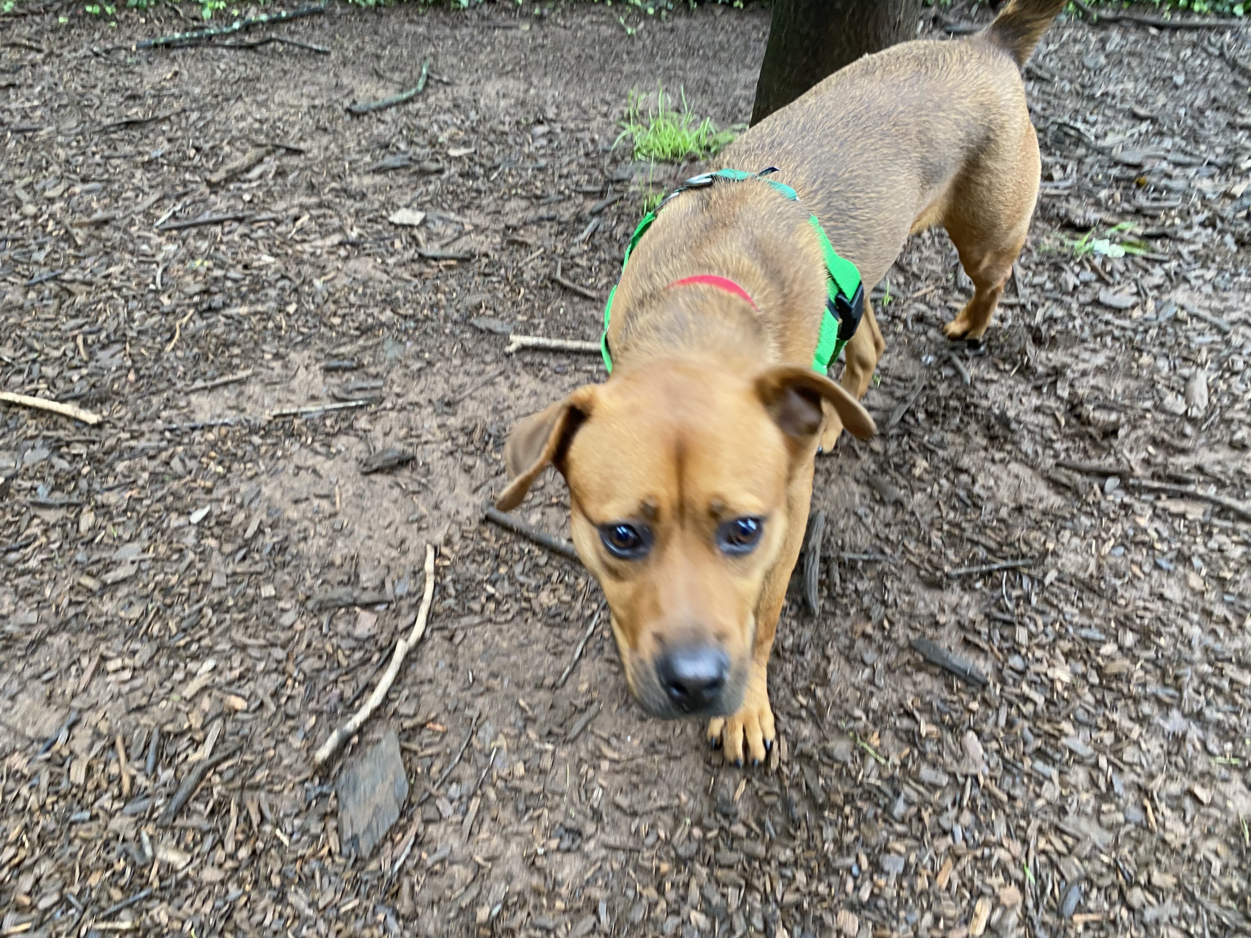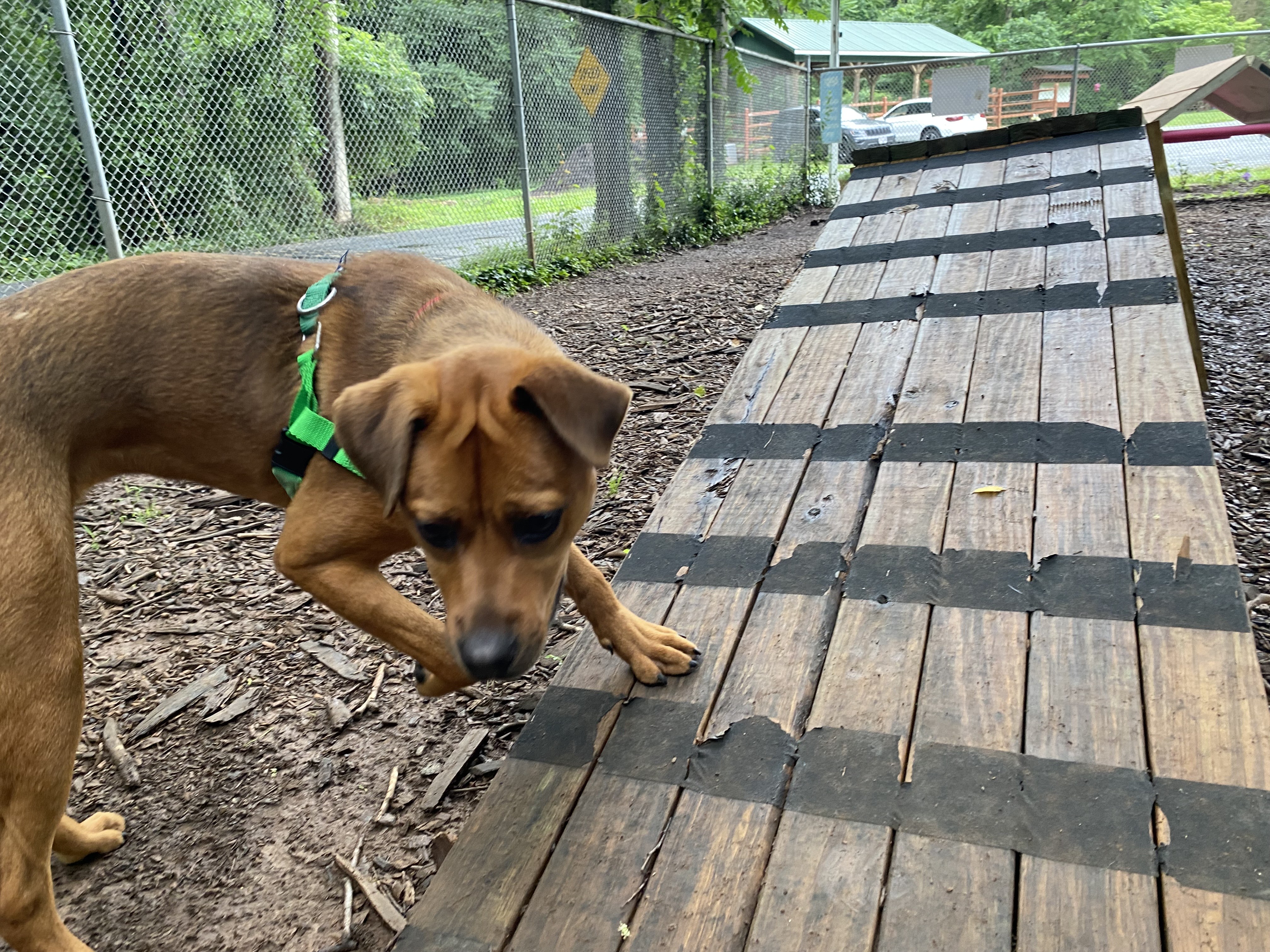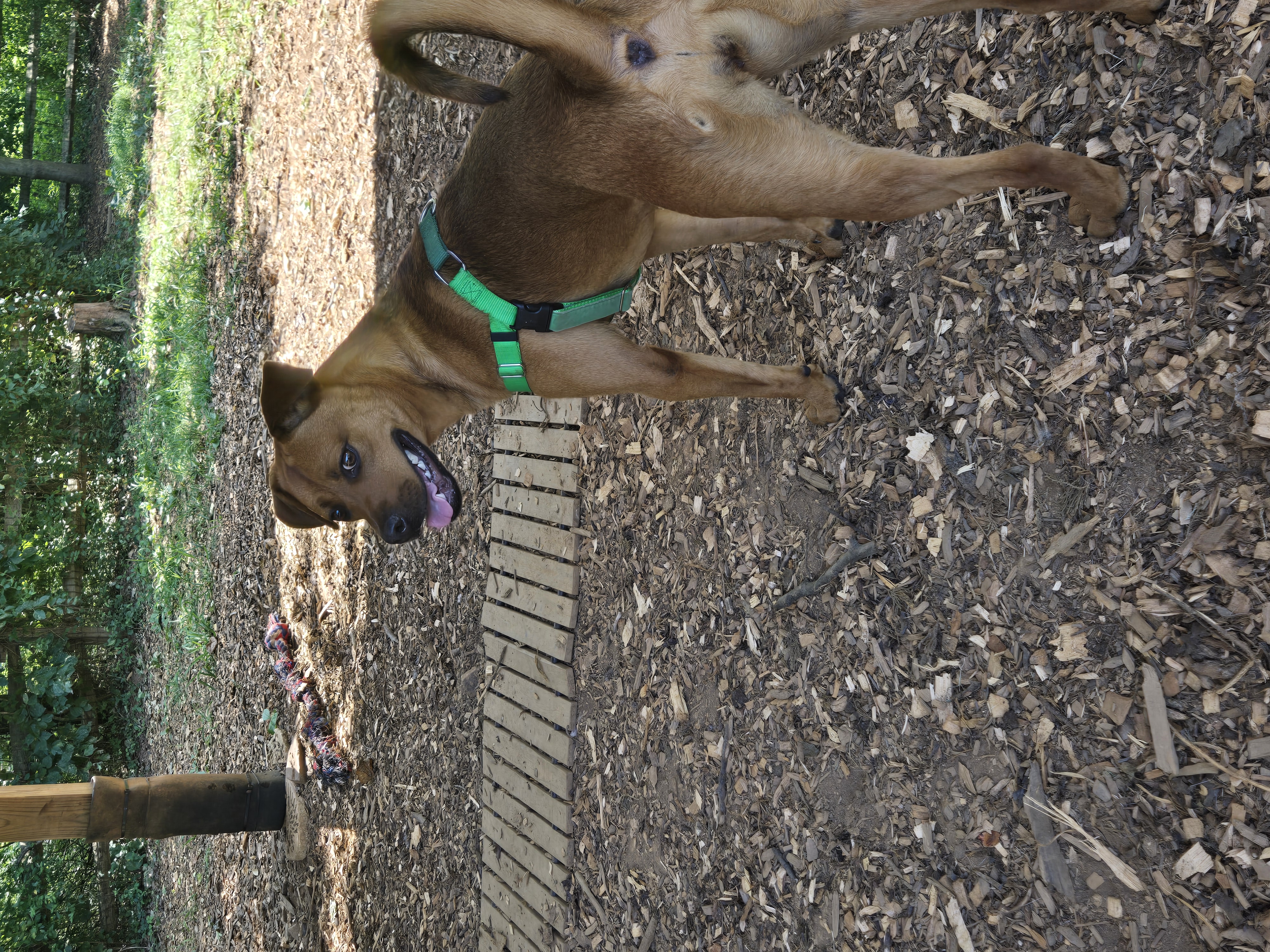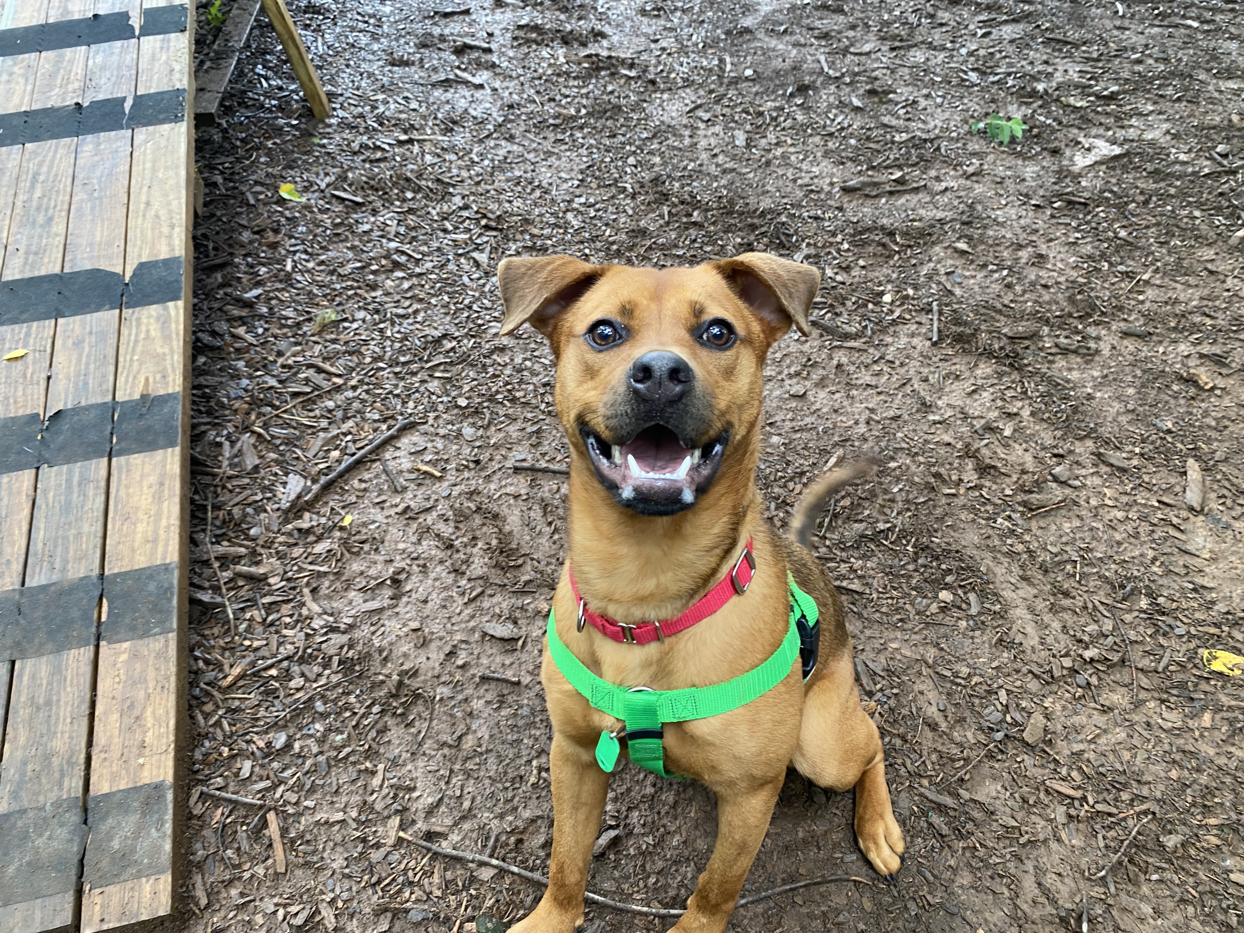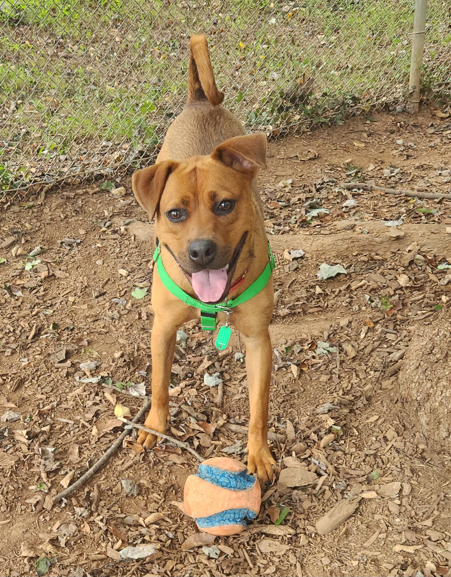 I’ve played well with other dogs at FOHA and tend to do best with pups who give me space and respect my energy. My play style is on the rough-and-tumble side, so I’d thrive with a tolerant, playful companion or as your one-and-only if you’re looking for a high-energy sidekick.