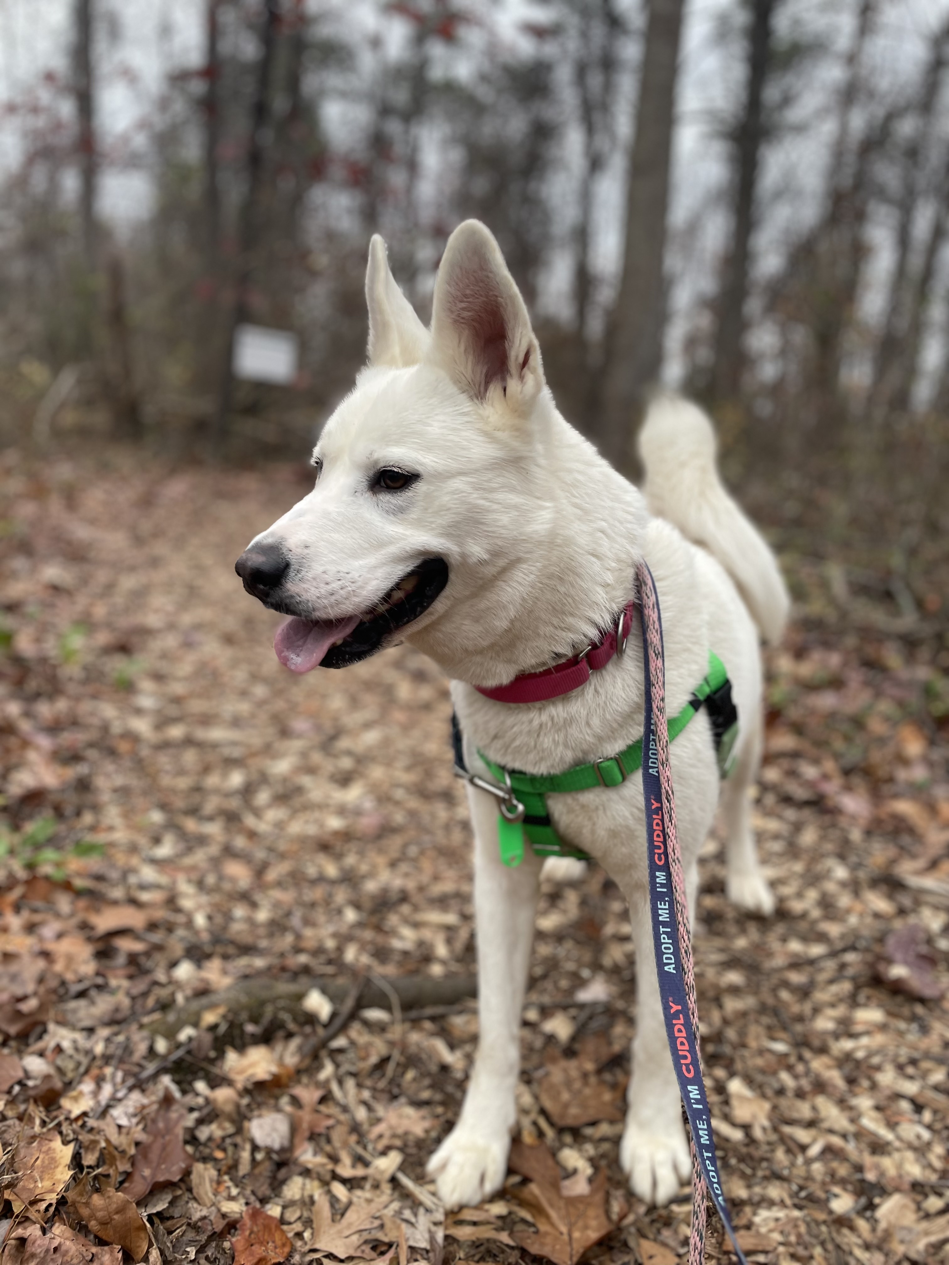 I’m a friendly girl who loves affection and being handled. I can get a little nervous if things move too quickly, so slow introductions help me feel my best. I walk well on leash, though I can pull a bit when something exciting, like a squirrel, catches my eye. (Hey, even a slayer can have a weakness for small creatures!)
