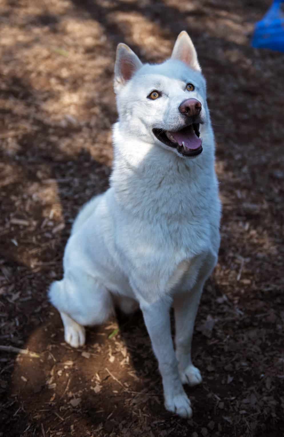 Dog-selective. I play well with dogs I already know and have enjoyed playgroups with other huskies. However, I can be a bit of a bully toward more submissive dogs and need careful management during introductions. A pre-adoption call is required to discuss what type of dog (if any) might be a fit.