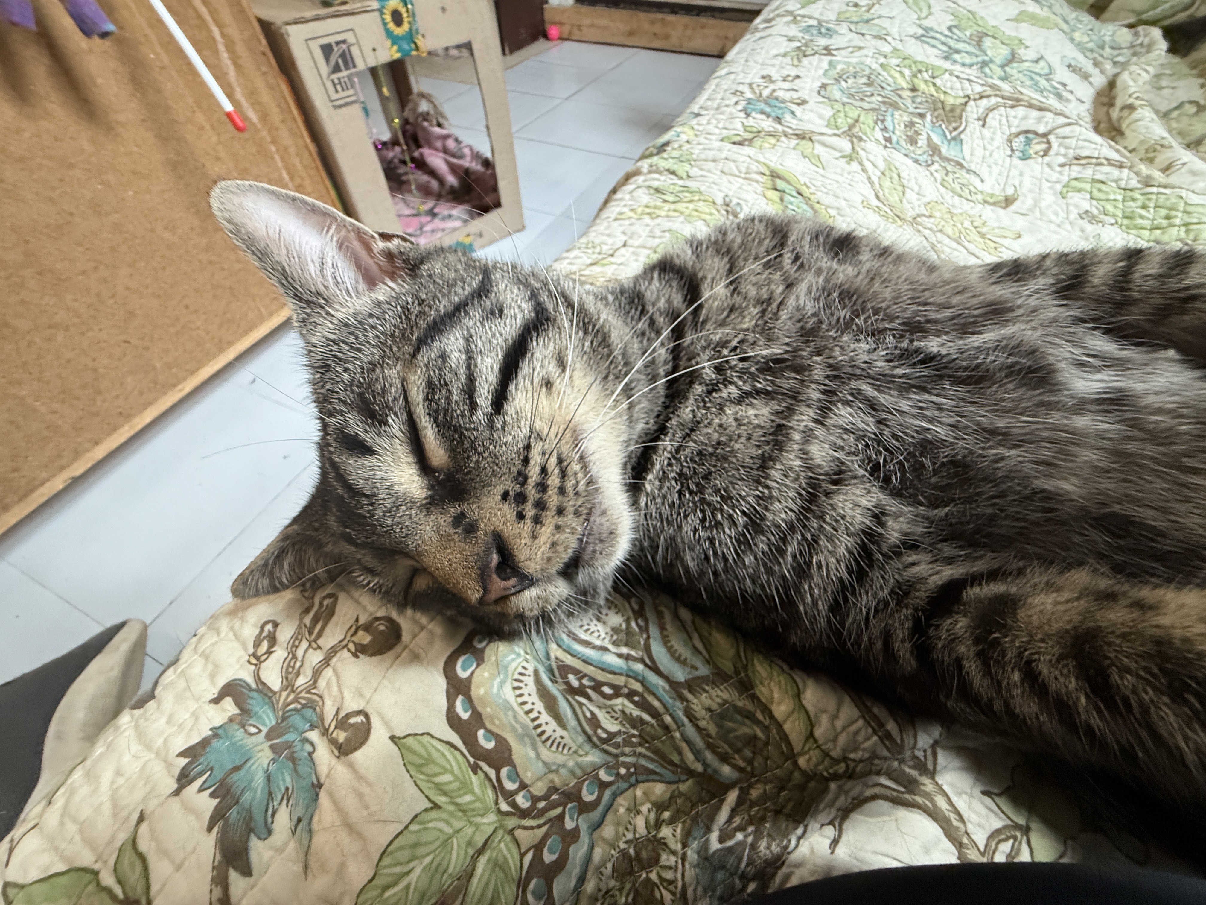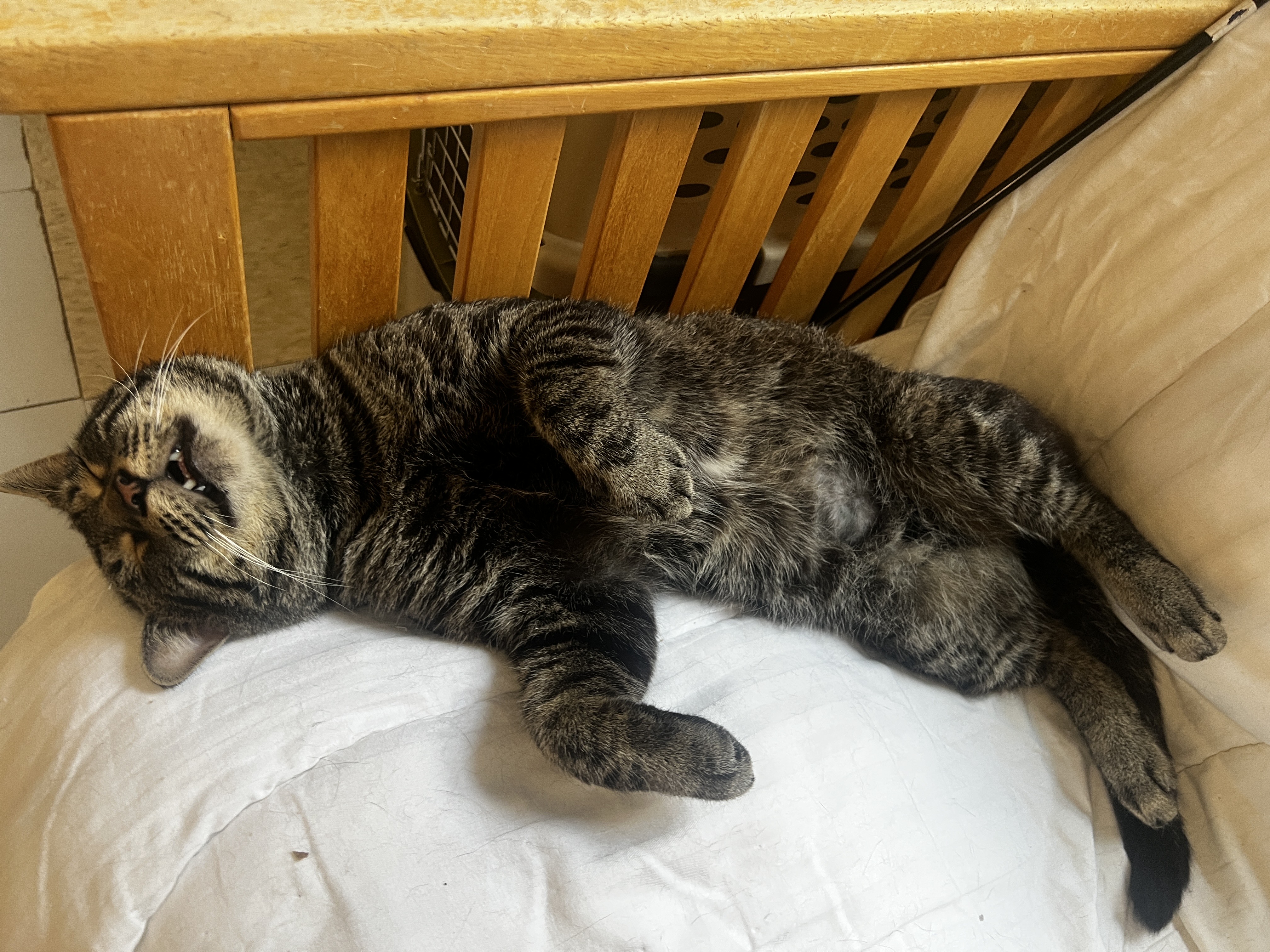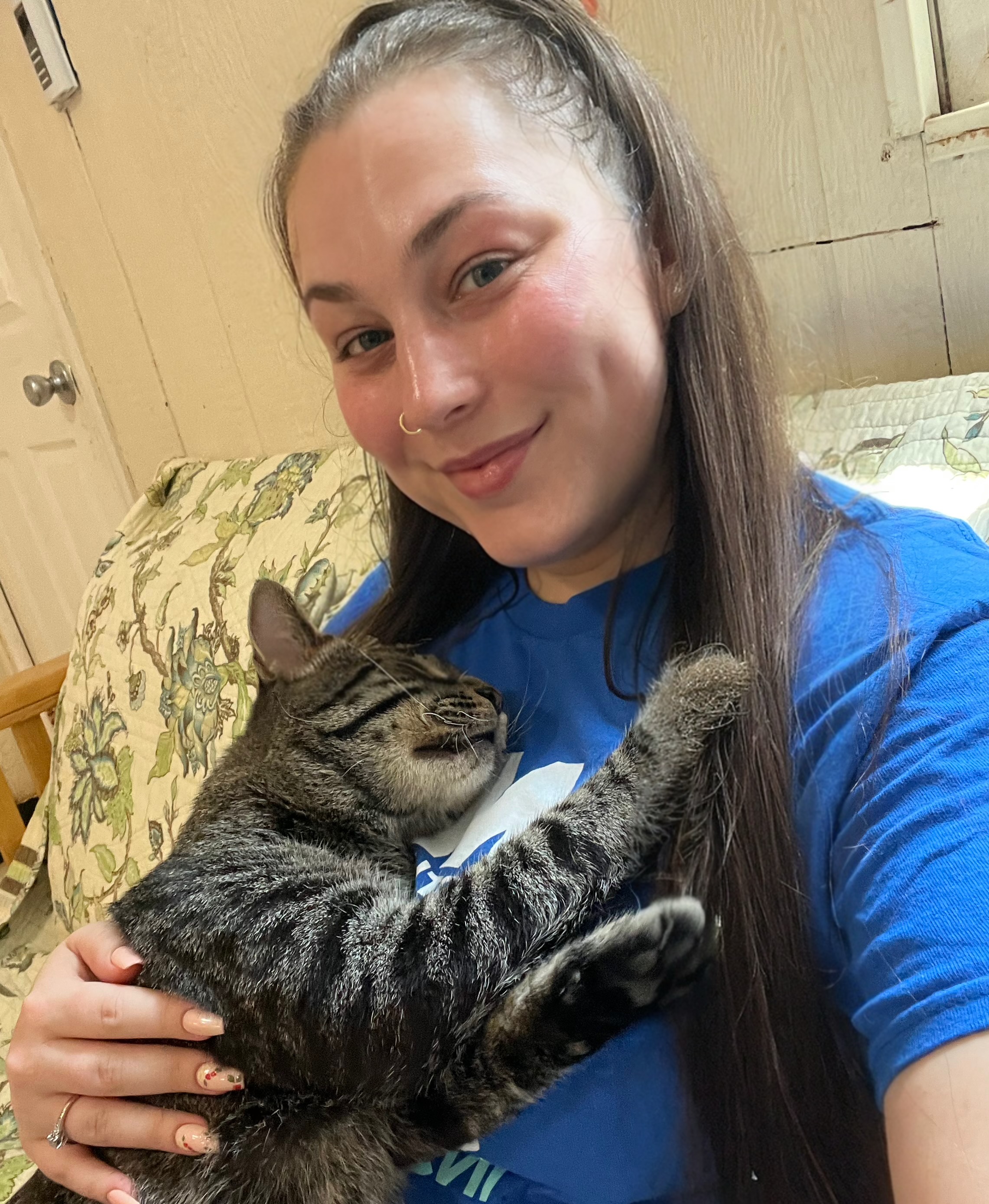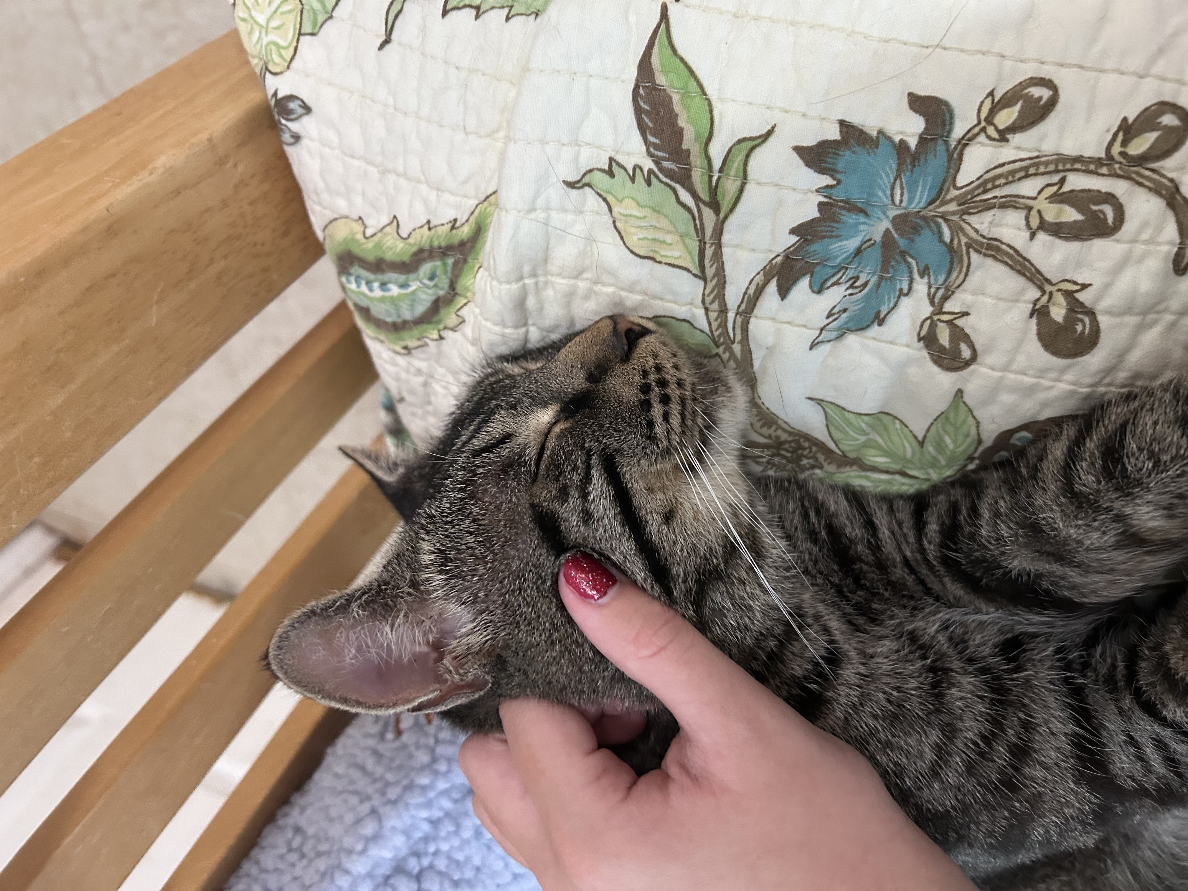 I love greeting visitors, hopping into laps, giving hugs, and chatting with my people. Playtime with wand toys is always a blast, and I never turn down a good cuddle session. I’ve even been known to get a little vocal when treats are on the way, a guy’s gotta express his excitement!
