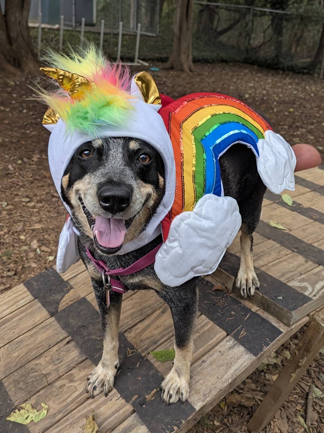 My favorite things? Splashing around in my pool on hot days, tossing around stuffed toys, going for walks, dressing up in fun costumes, and curling up in soft blankets. I enjoy companionship, but I also value my independence and appreciate having time and space to do my own thing.