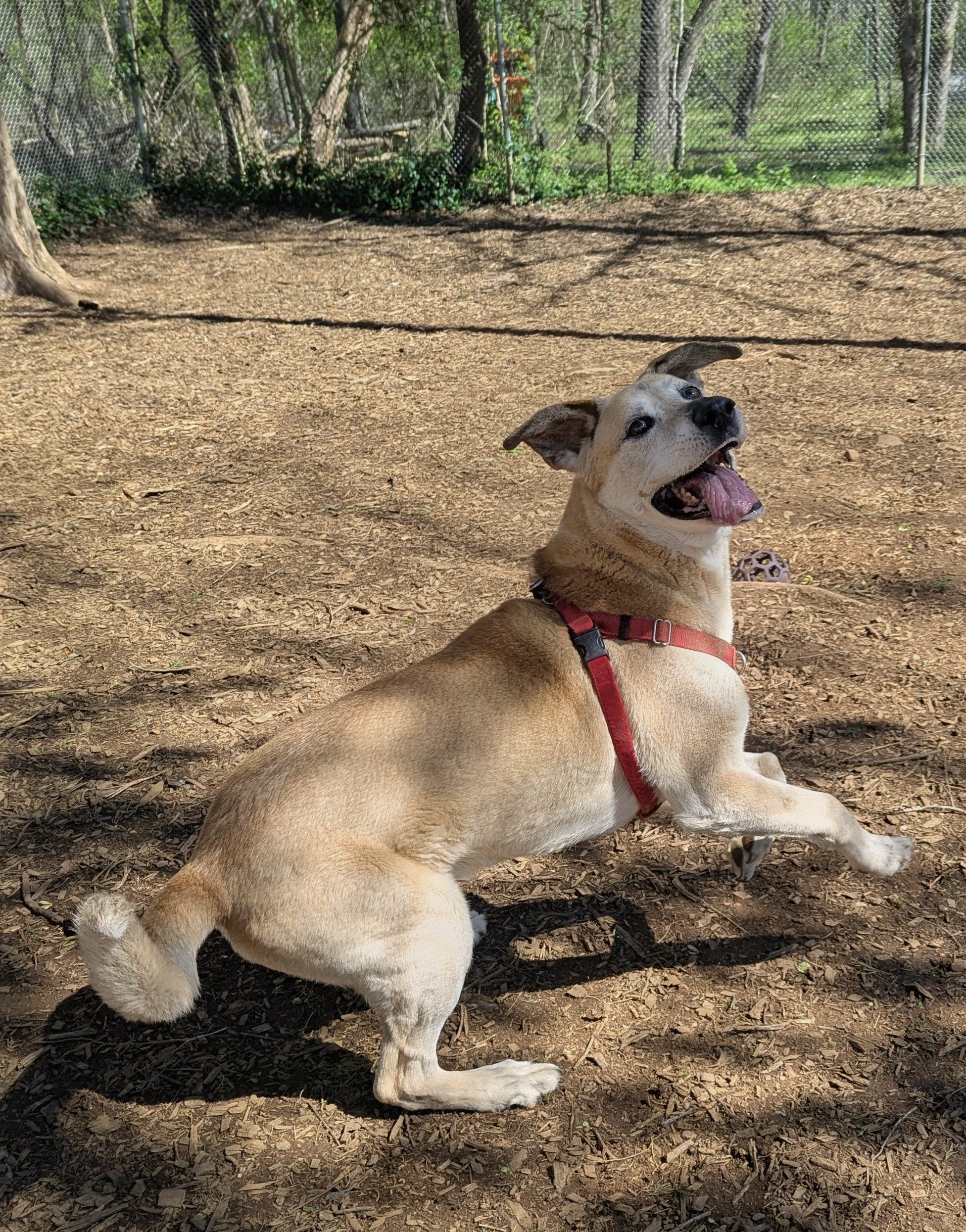 I adore car rides, snuggling with my favorite humans, and romping around with my beloved oversized ball. It’s been a little while since I was in a playgroup, but I used to enjoy playing with other dogs — though I can be a bit much for the smaller ones. My absolute favorite thing? Hanging out after hours in the adoption office, soaking up affection from staff and volunteers like the oversized cuddle bug I am.