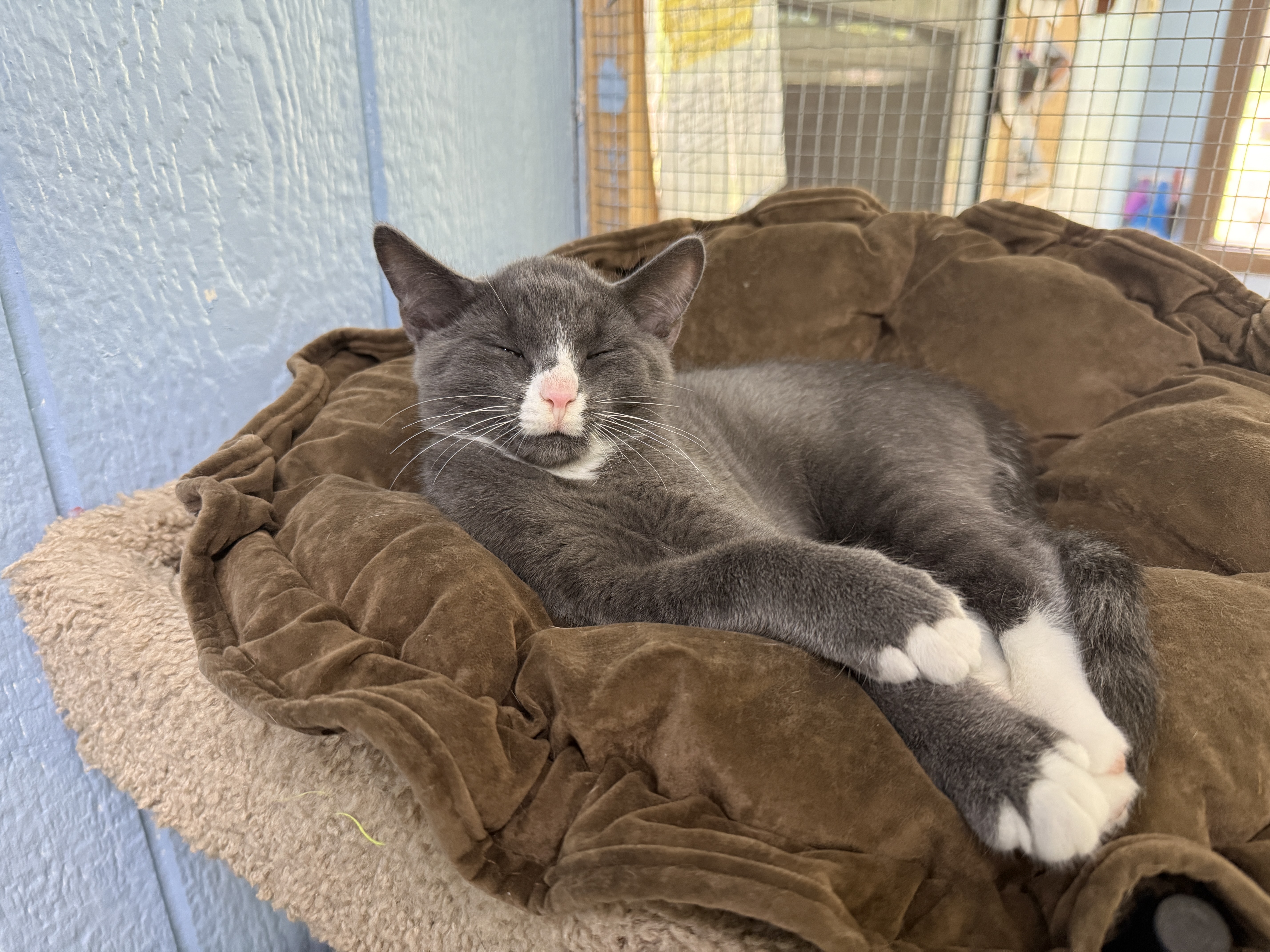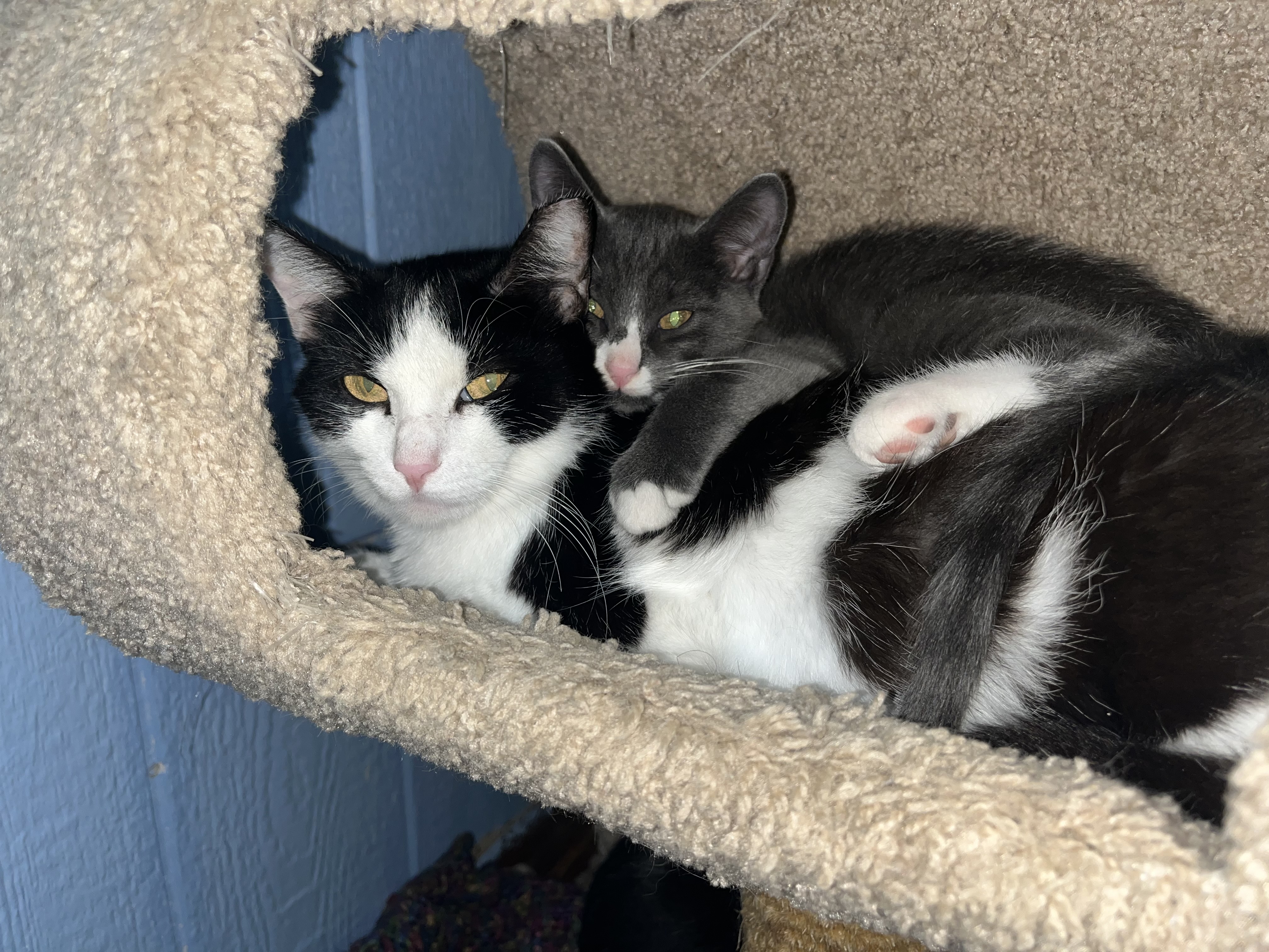 I do best with a social cat companion! Kittens under 6 months old at FOHA are required to go home with another kitten or to a home with another social cat. This is prime time for me to learn everything it means to be a cat.