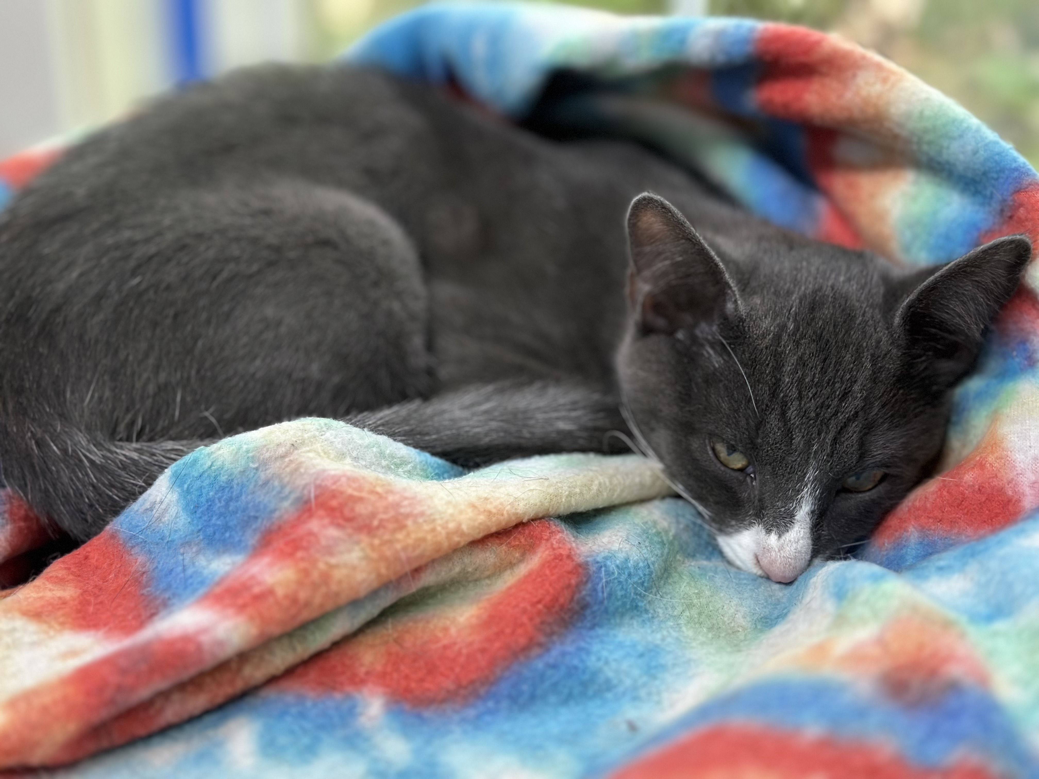Spay/neuter, vaccines (rabies and FVRCP/distemper), diagnostic testing (including FIV/FeLV), any additional medical care recommended by our vet, 1 bag starter food, 1 month flea/tick prevention, and 1-month access to Petcademy for post-adoption support.