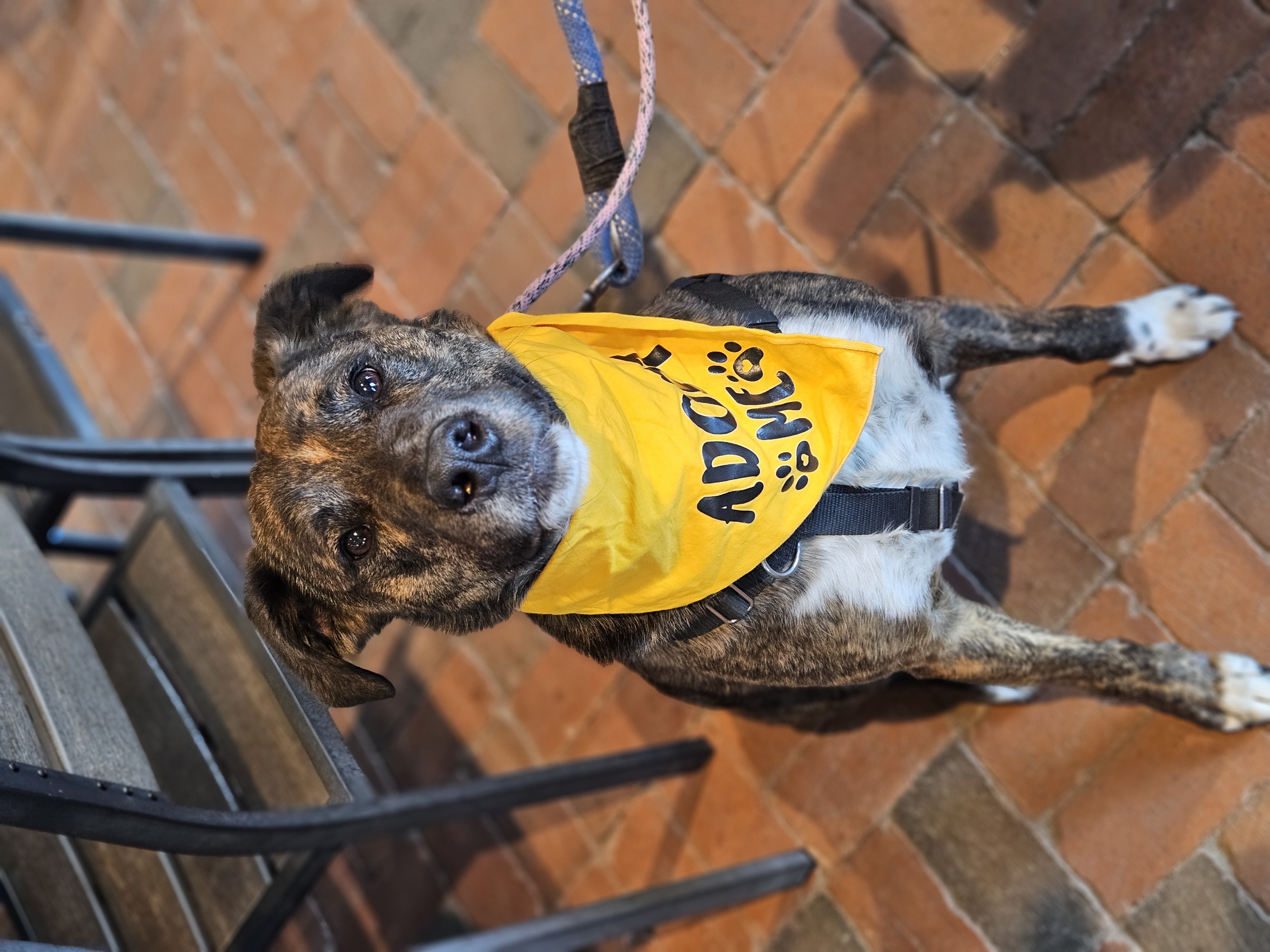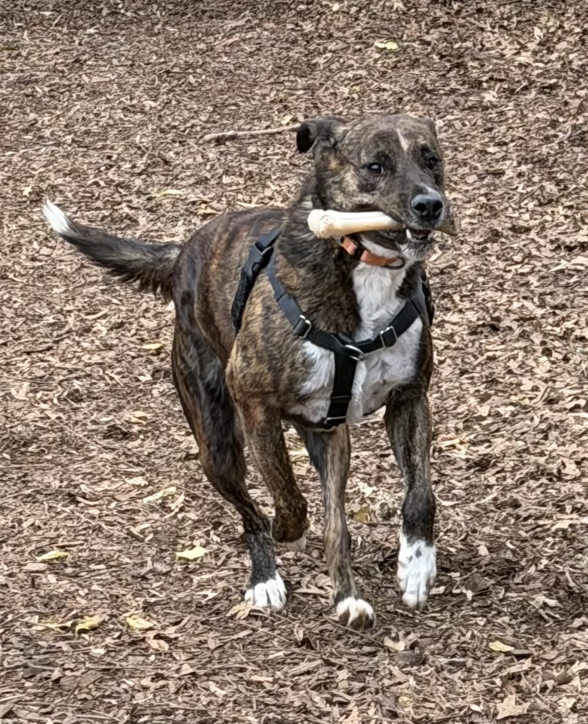 I walk nicely on leash, like to stay close by your side, and I love leaning in for affection. If you happen to find the magical itch spot on the right side of my neck under my collar, be prepared—you’ll get the happiest little leg kick ever! It’s kind of my signature move.