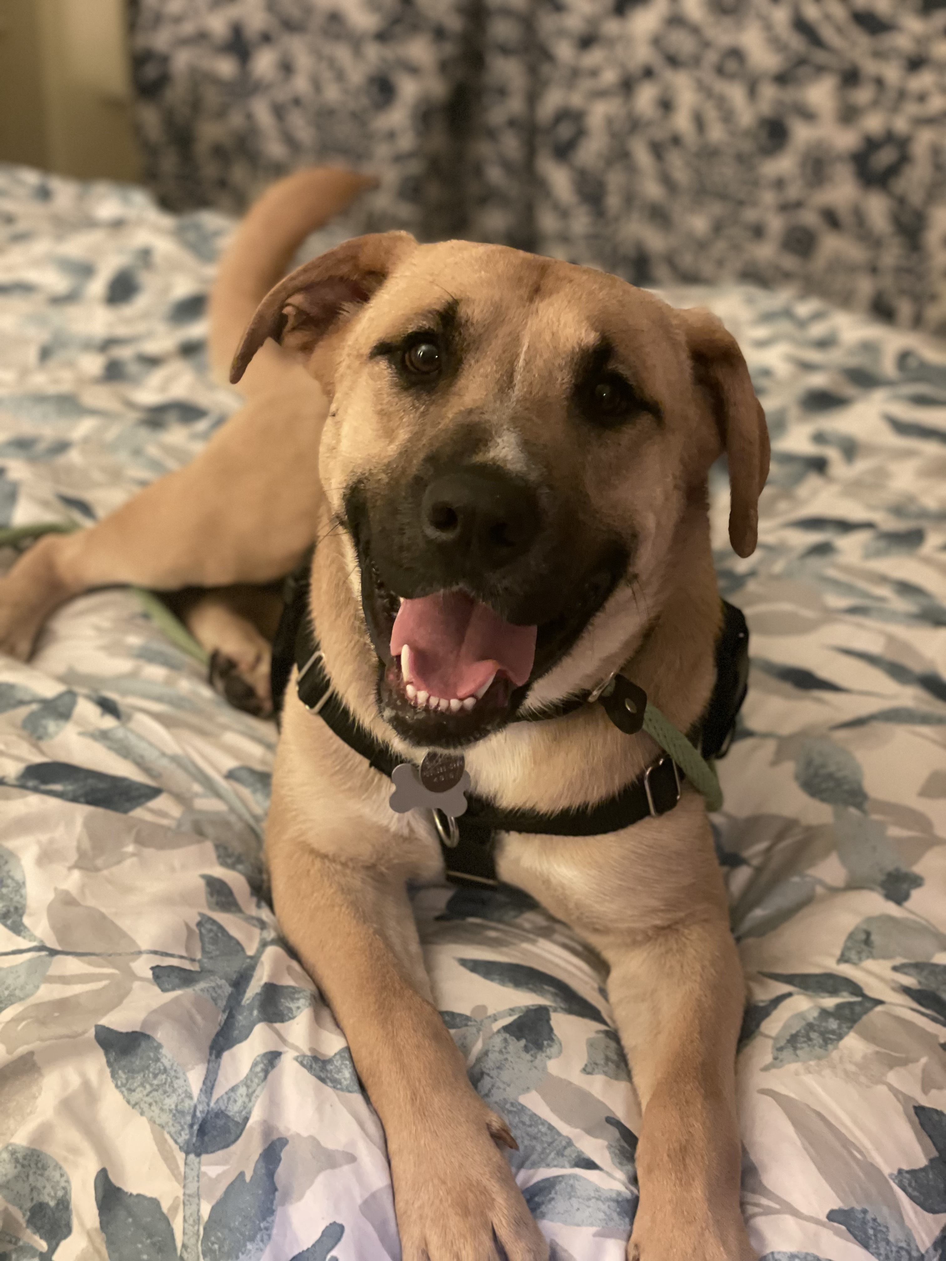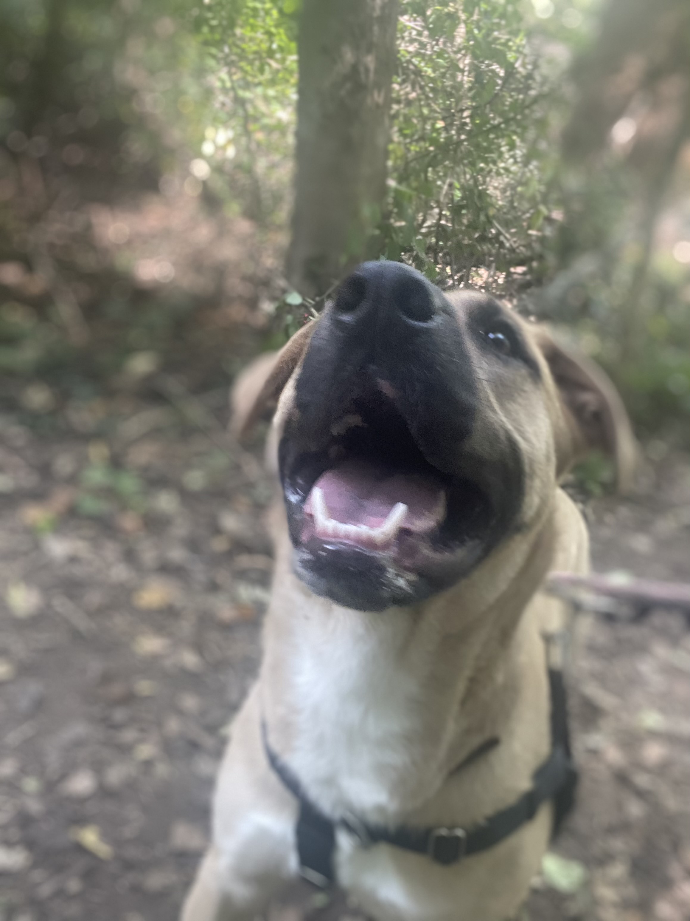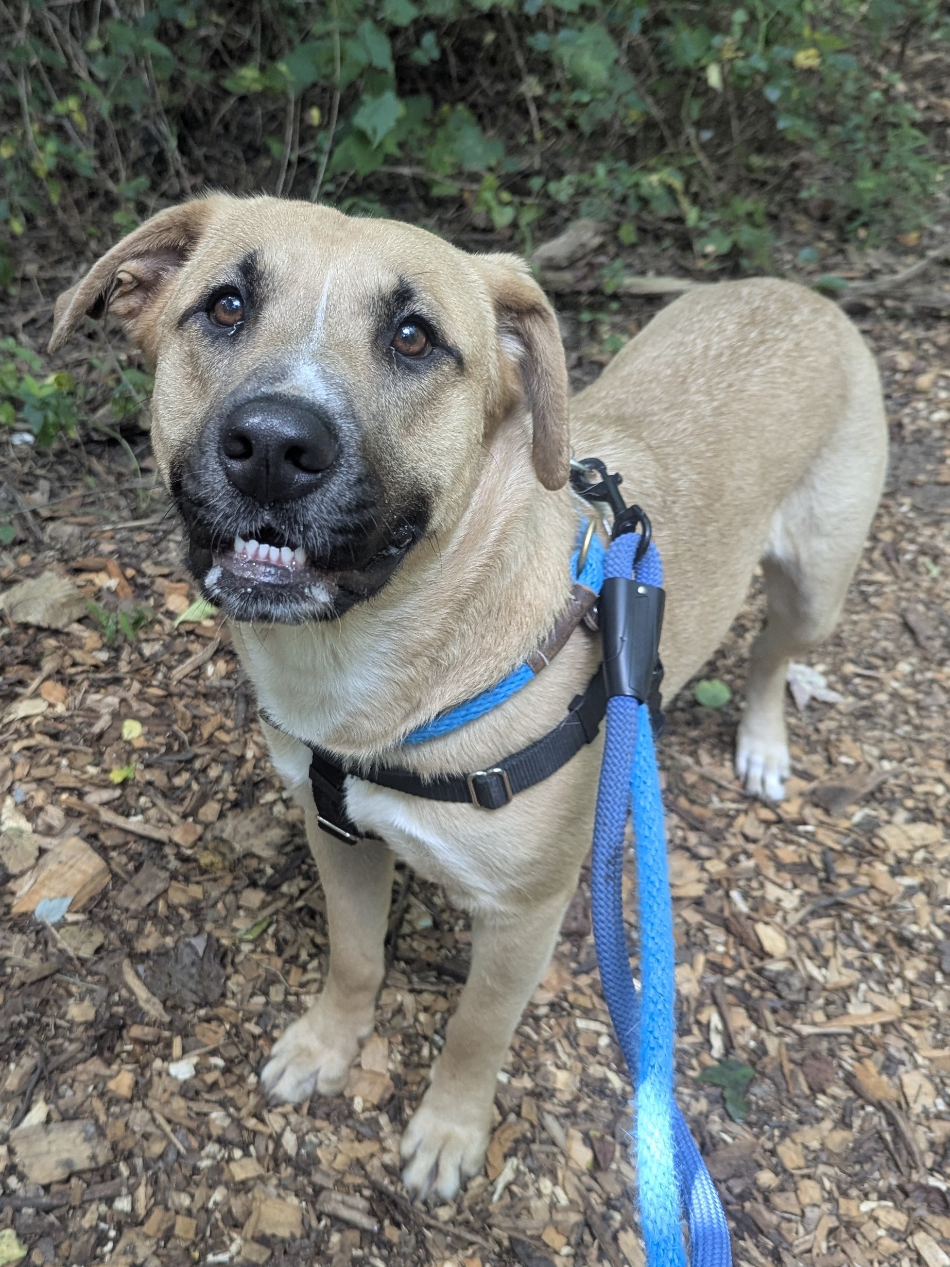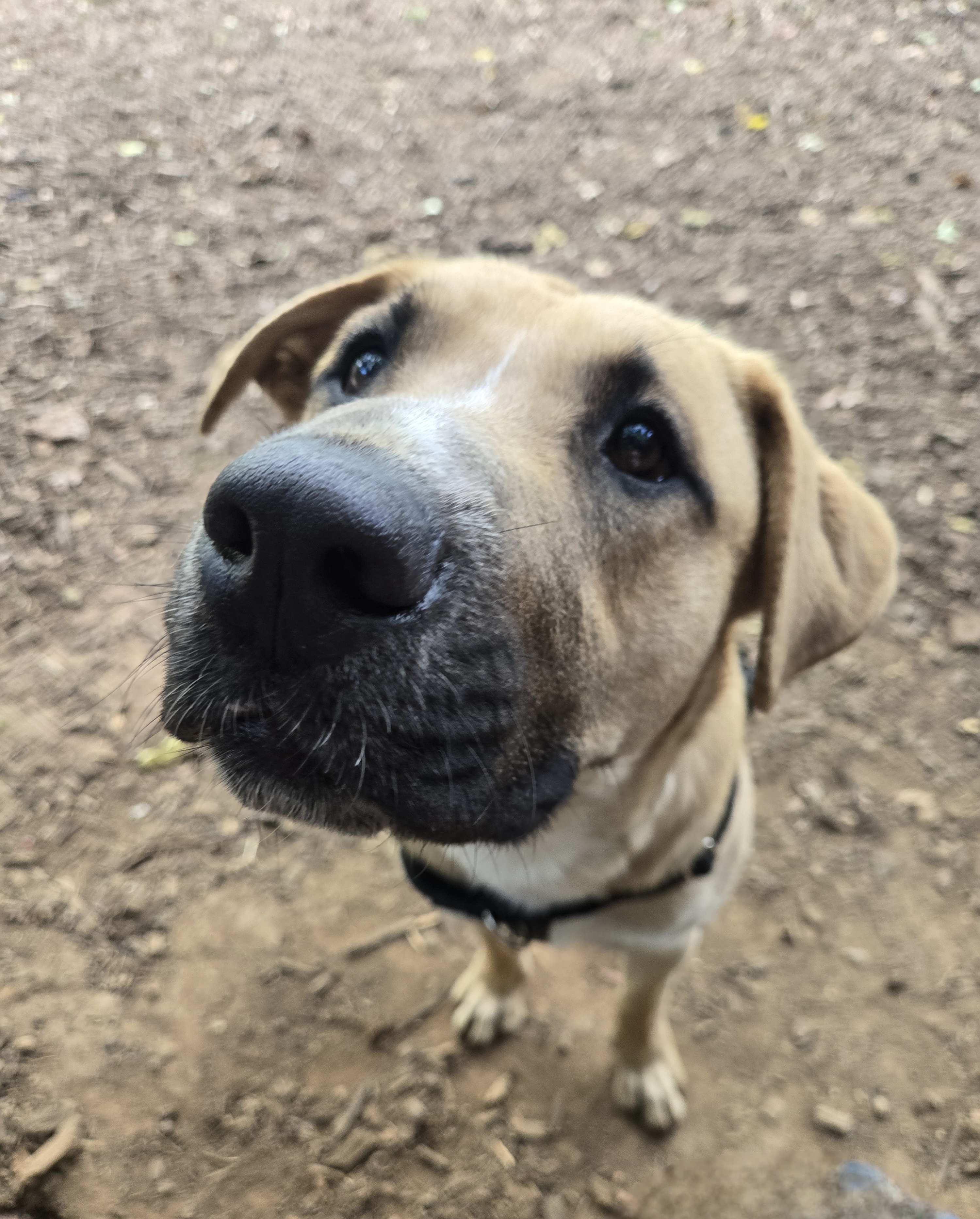 Meet Genie! Genie is a total sweetheart who’s ready to find her forever family. She’s affectionate, loves cuddles, and enjoys being close to her people, sometimes even resting her head in your lap! Car rides are fun now, especially when a pup cup is involved, and she walks beautifully on a leash. Genie has a curious side and loves exploring her surroundings! She thrives in a calm, loving environment and shows her happiest, most playful self once she feels at home. This lovely girl is ready to share all her love. Could you be the one to give Genie her forever home?