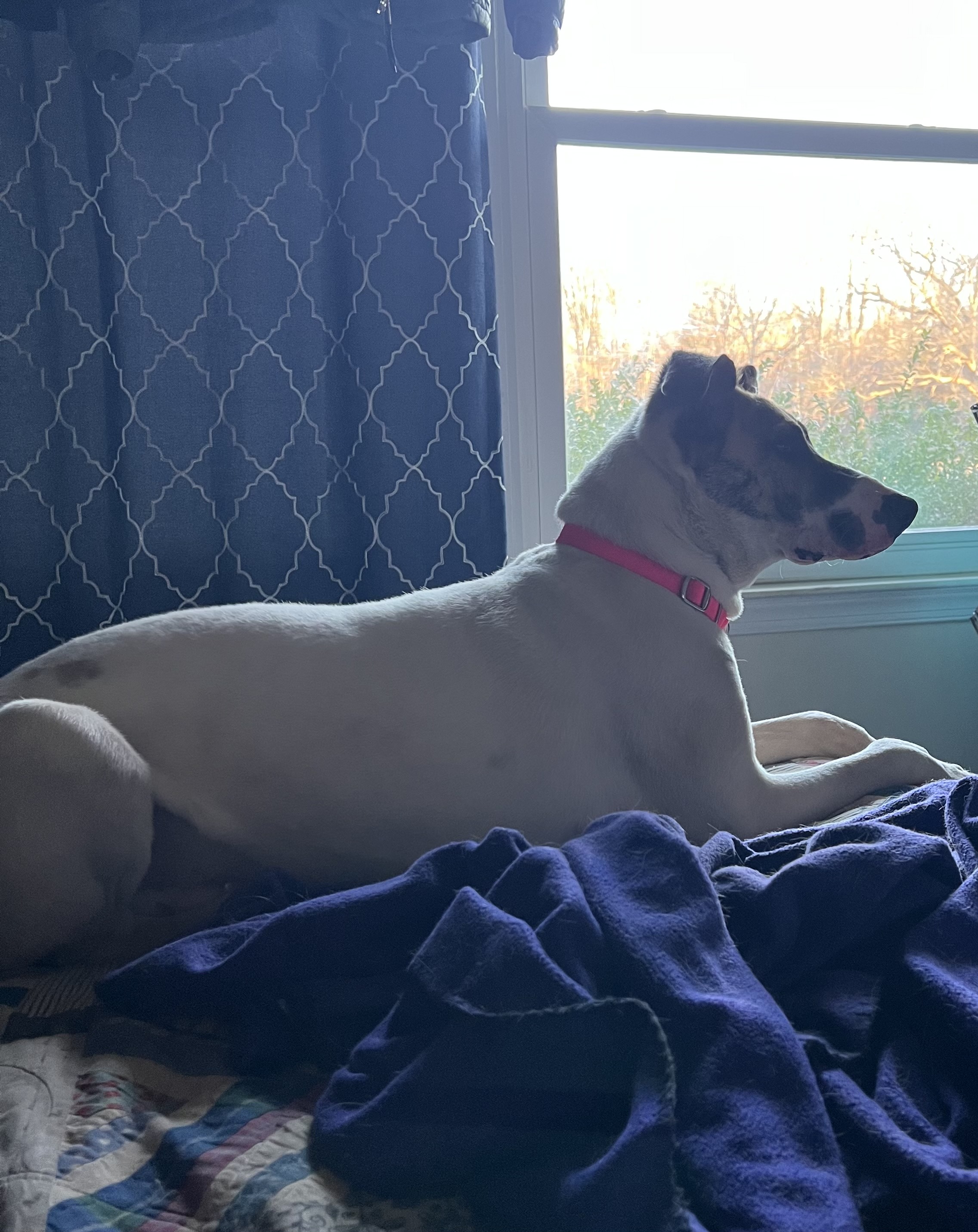Sniffing, walks, bouncing around the play yard, toys of all kinds (I am a toy destroyer and my toys should be selected carefully), playing with my dog friends, chewing on my favorite nylabone, getting lots of attention!