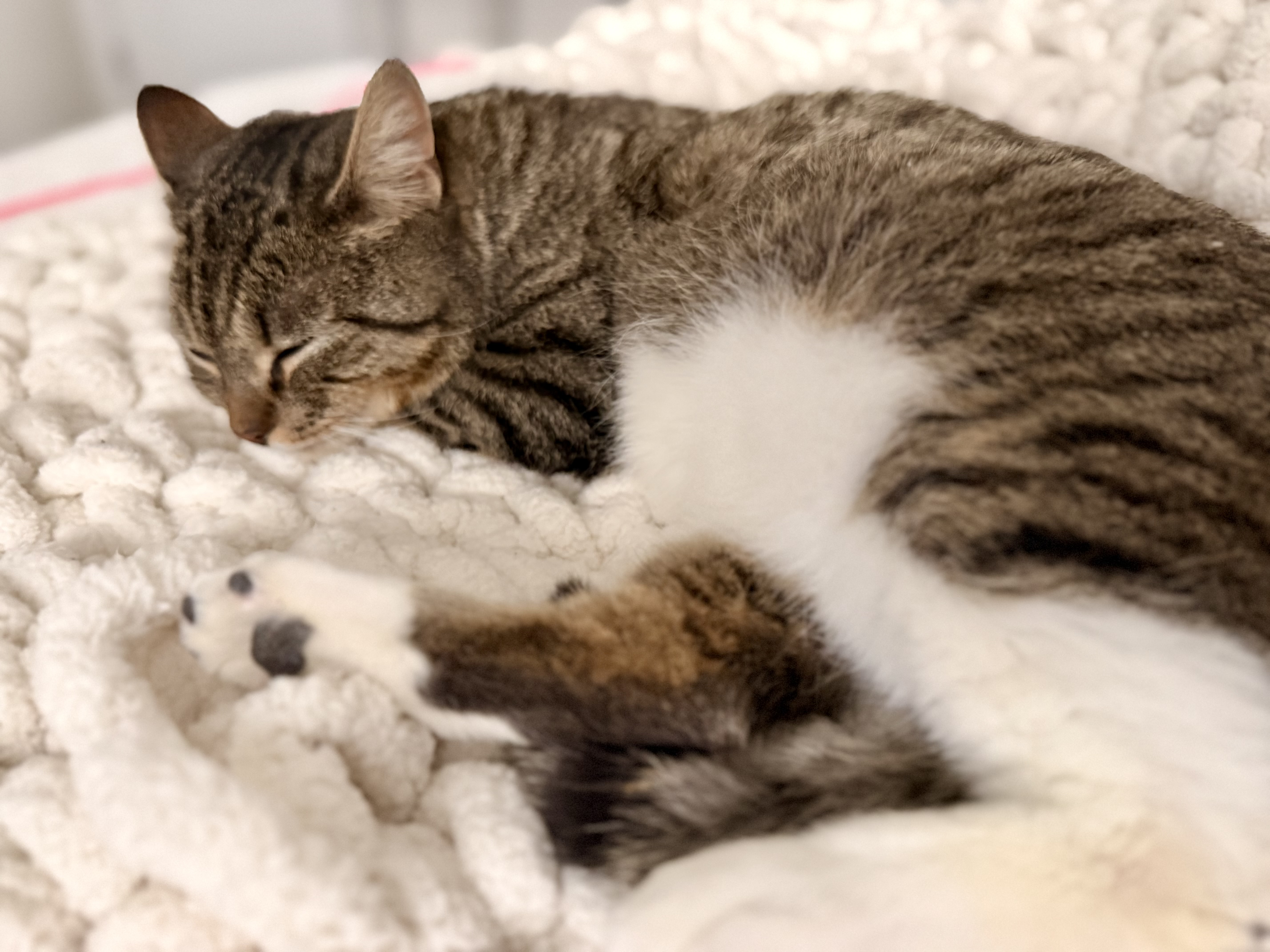 Spay/neuter, vaccines (rabies and FVRCP/distemper), diagnostic testing (including FIV/FeLV), any additional medical care recommended by our vet, 1 bag starter food, 1 month flea/tick prevention, and 1-month access to Petcademy for post-adoption support.