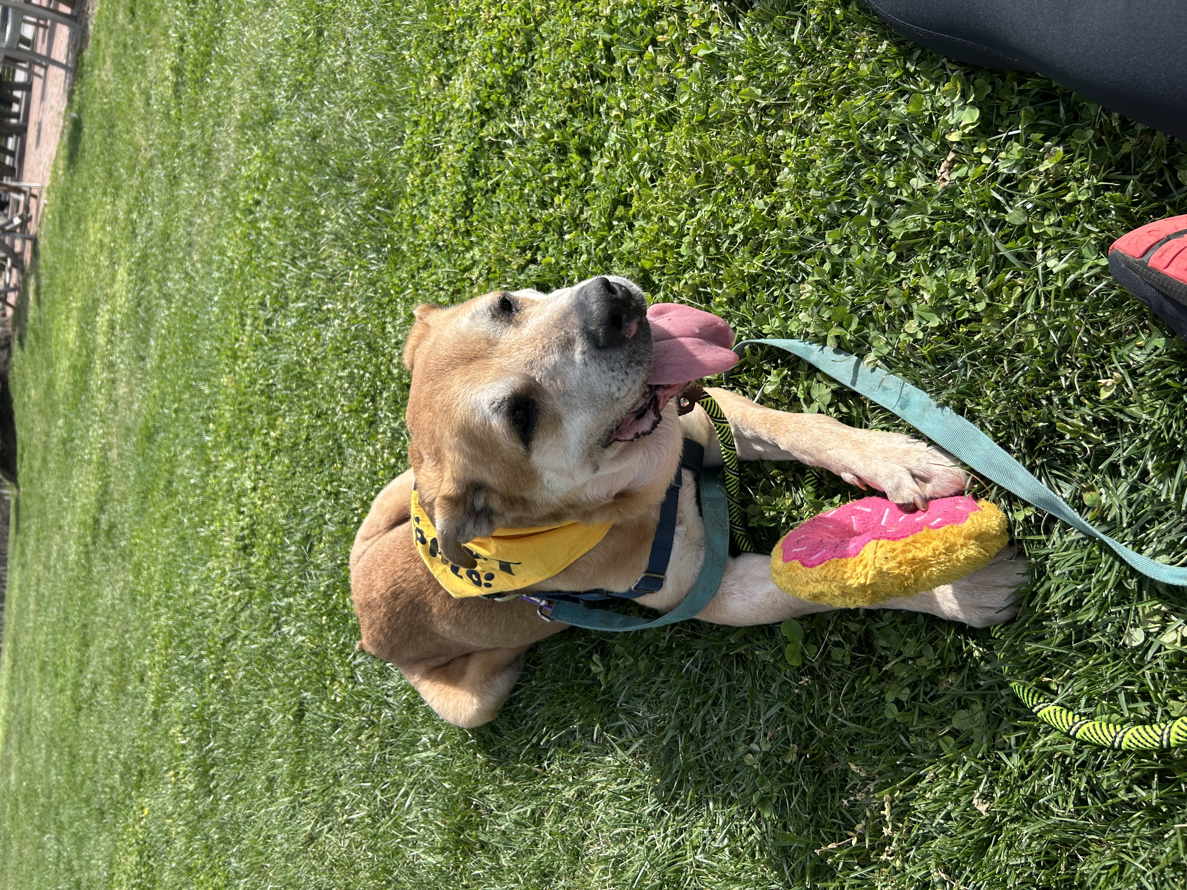 Ham Sandwich is a sweet, easygoing senior with a gentle personality who may seem a little aloof at first but settles in quickly as a calm, steady companion. He walks well on leash and enjoys taking his time to sniff and explore, appears friendly with other dogs, and may be housetrained. He has a playful side and enjoys toys, but he especially loves treats and is very food motivated, so he may try to sneak an extra snack if given the chance. Overall, he’s a low key guy looking for a comfortable home where he can relax and enjoy the simple things, complete with a few charming quirks like his signature little pre potty dance.