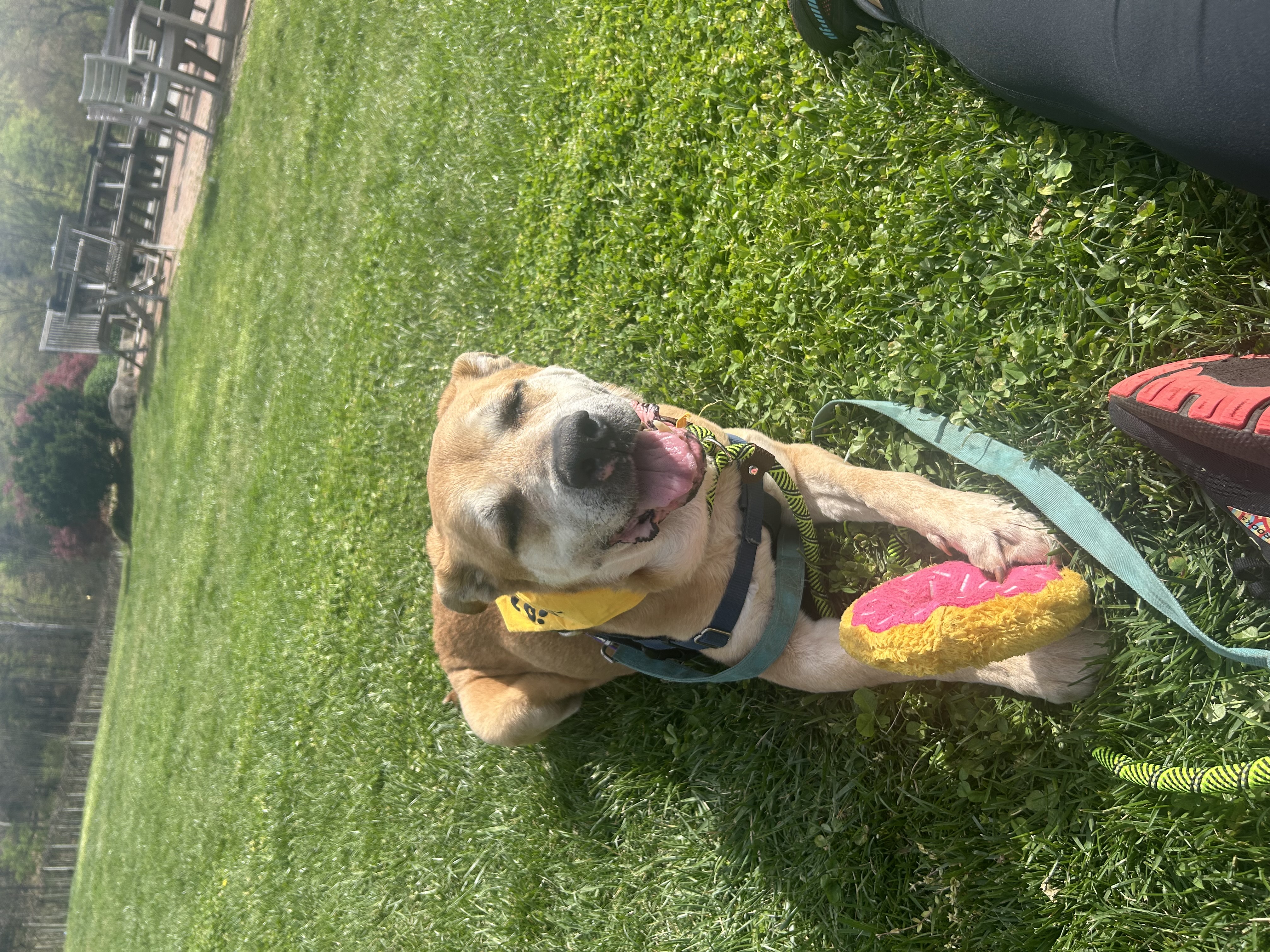 Sniffing everything! Tennis balls, sunbathing, flopping over for a belly rub!