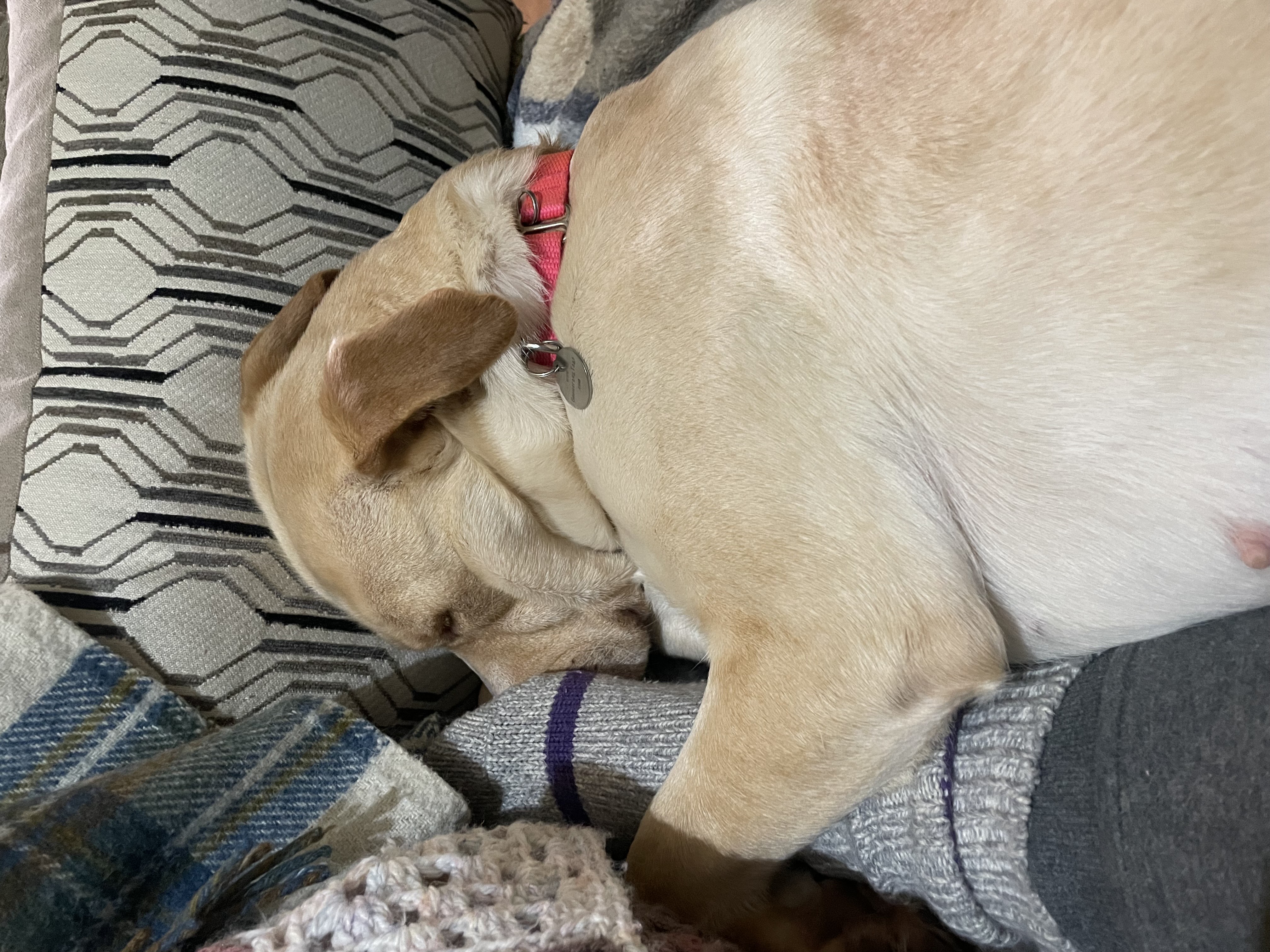 Treats (a lot!), snuffle mats and food puzzles, affection, belly rubs (especially her tickle spot!), calm walks, and spending time with people.