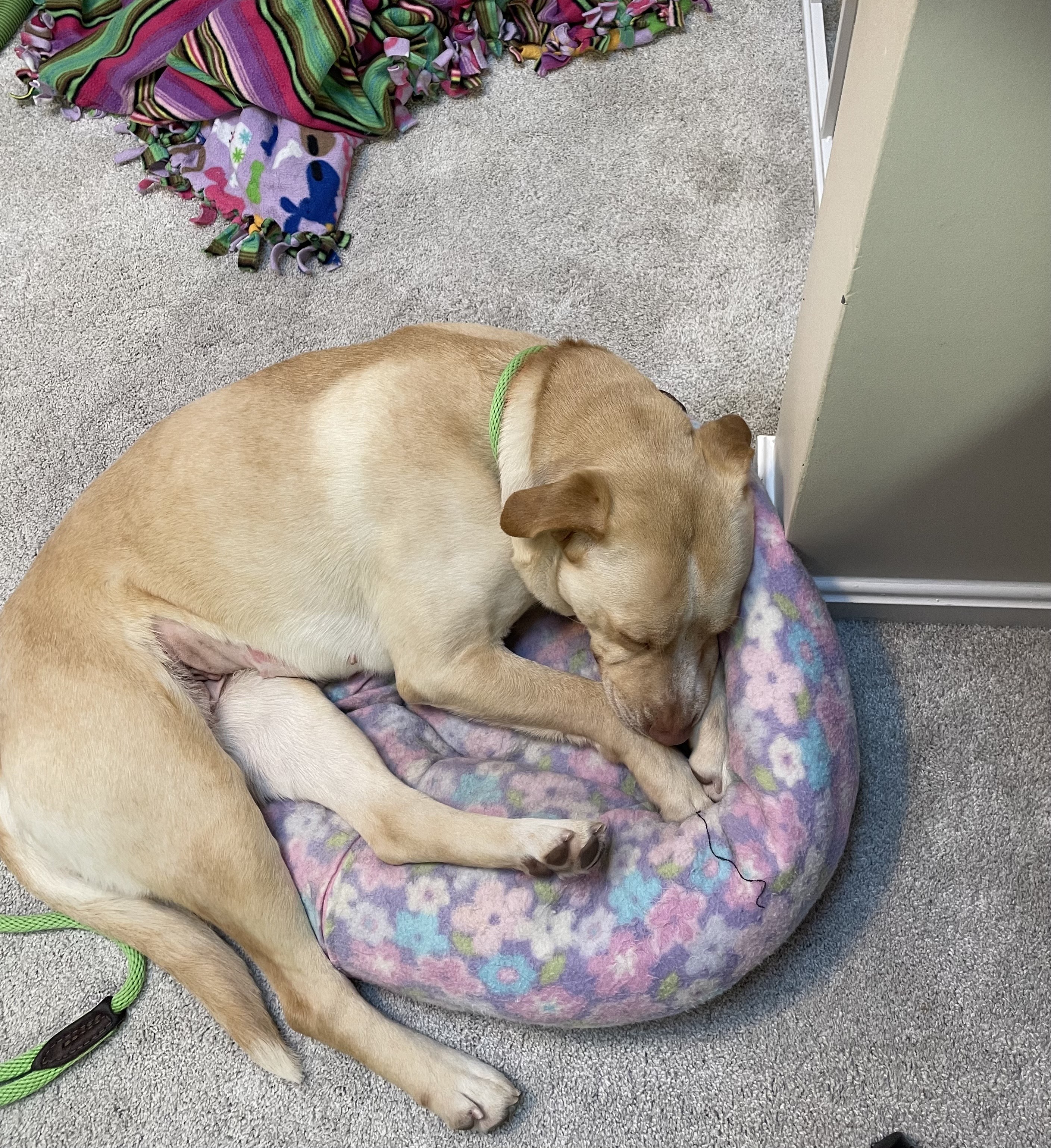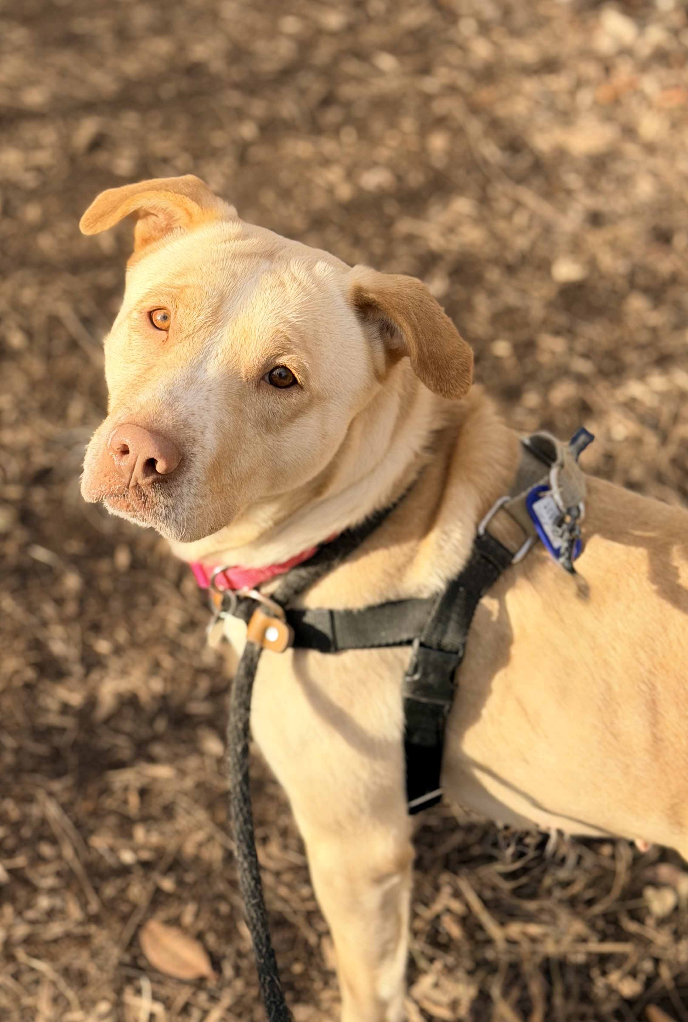 Hi, I’m Sundae — a sweet, friendly girl who is easy to enjoy having around. I spent an hour hanging out in an office and showed just how relaxed, playful, and people-oriented I can be. I greet new people nicely with loose, friendly body language and love affection, belly rubs, and gentle attention. I’m treat-motivated (very!) and enjoy enrichment like snuffle mats. I walk calmly on a loose leash and am excited to get out and explore.