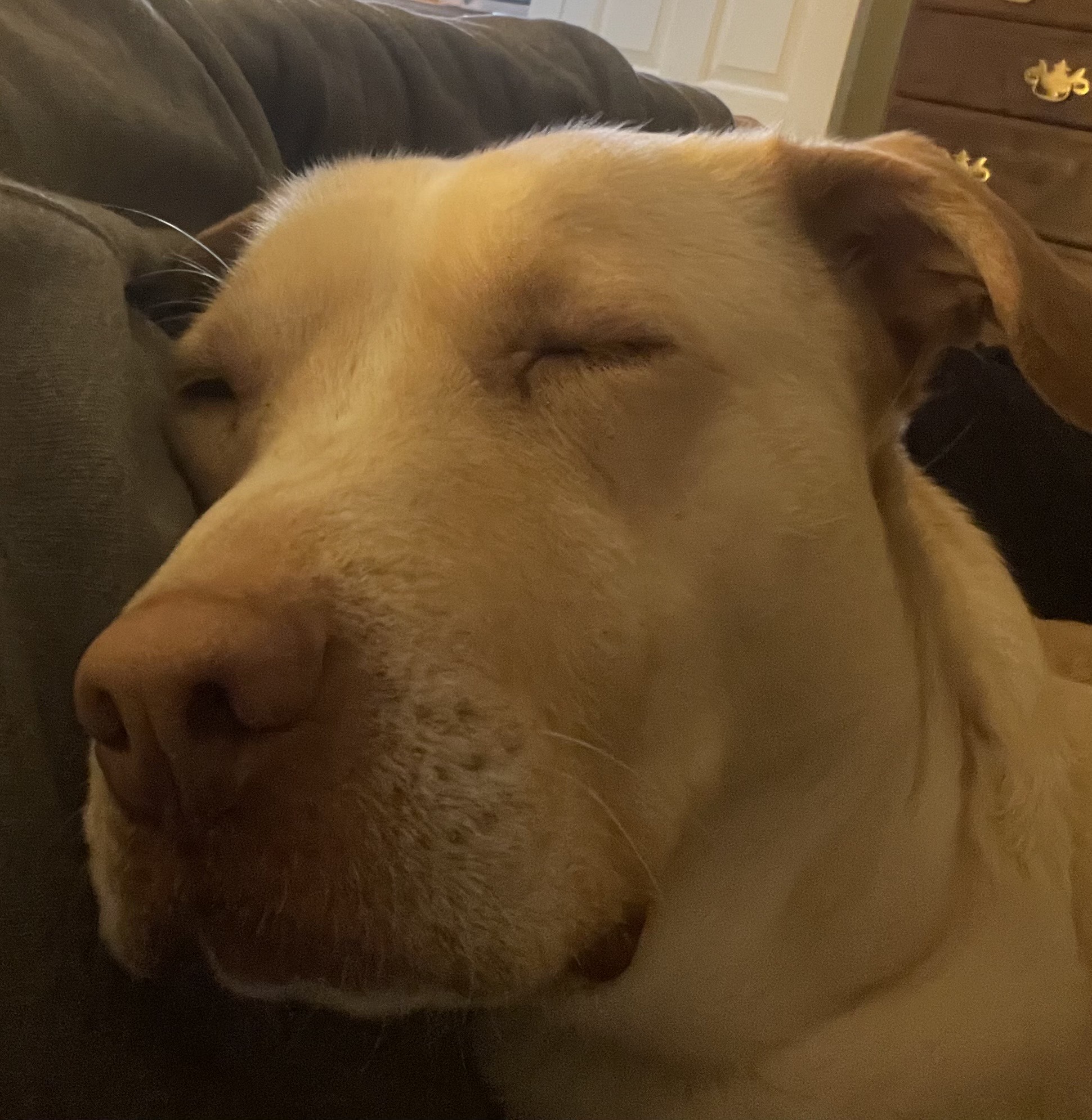 Having her mouth or paws inspected — she’ll gently push hands away to say she’s uncomfortable, so slow and respectful handling is best.