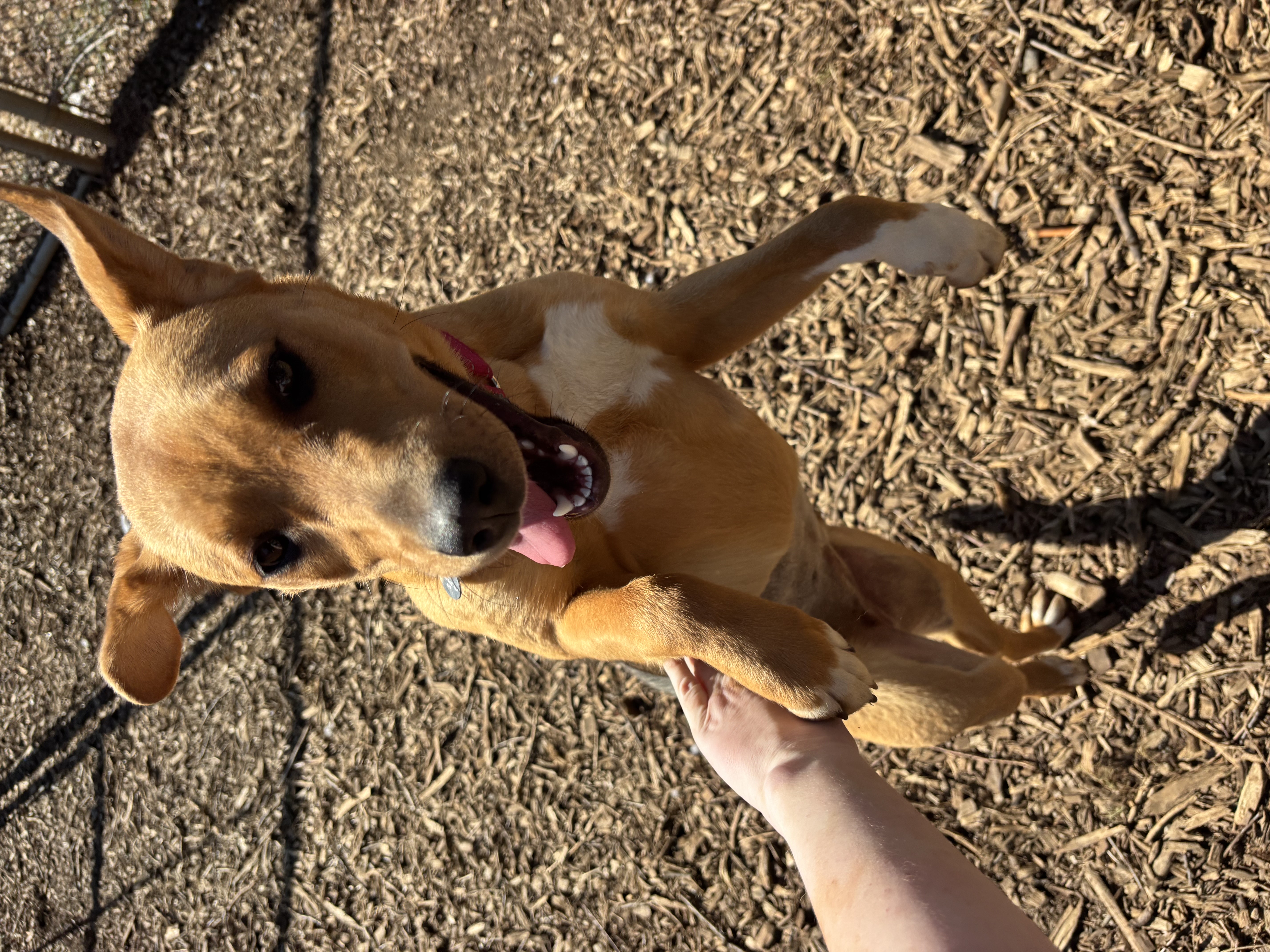 Hi, I’m Kenya, a sweet and playful girl who loves toys, gentle pets, and exploring new smells. I can be a little cautious with new people at first, but I settle quickly once I know you. I enjoy running, playing keep-away, and tug games, and I give up toys easily when asked. I’d thrive in a home where I get confidence-building, gentle encouragement, and lots of fun playtime.