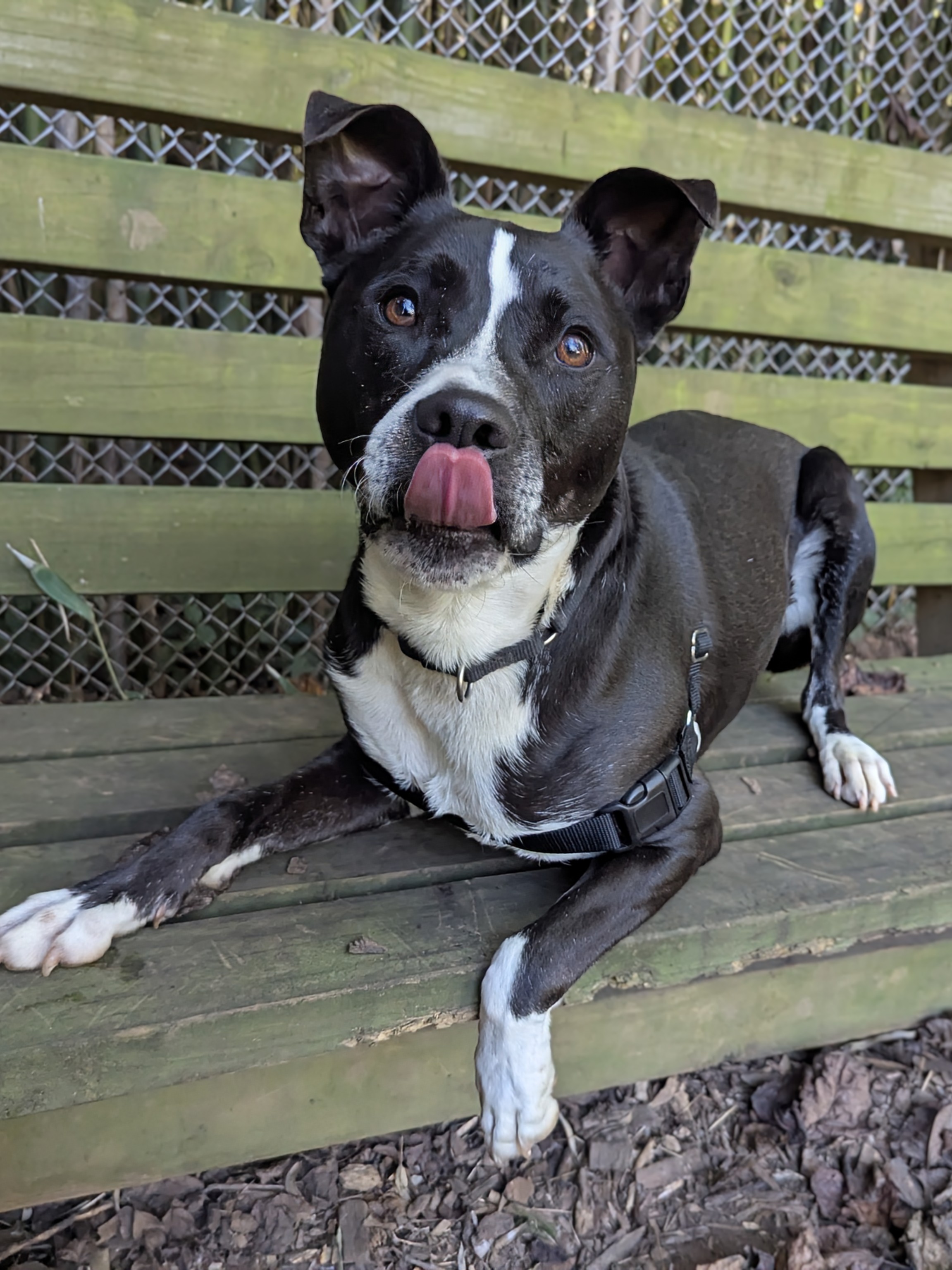 Hey there, I’m Leo, and let me tell you, life’s a ball when you’re with me! I’ll entertain you with my goofy antics and playful spirit. I’m a smart cookie who loves treats and uses them to show off my cleverness. I’m also a pro at snuggling and giving kisses—there’s nothing better than hugs with my favorite humans. I dream of a cozy home with a fenced-in yard (at least 6 feet tall because I’m quite the climber!) where I can run, play, and be carefree. I prefer smaller gatherings over big crowds and would thrive in a low-stress, quiet neighborhood. With some training and lots of love, I’ll be the loyal, fun-loving companion you’ve been waiting for.