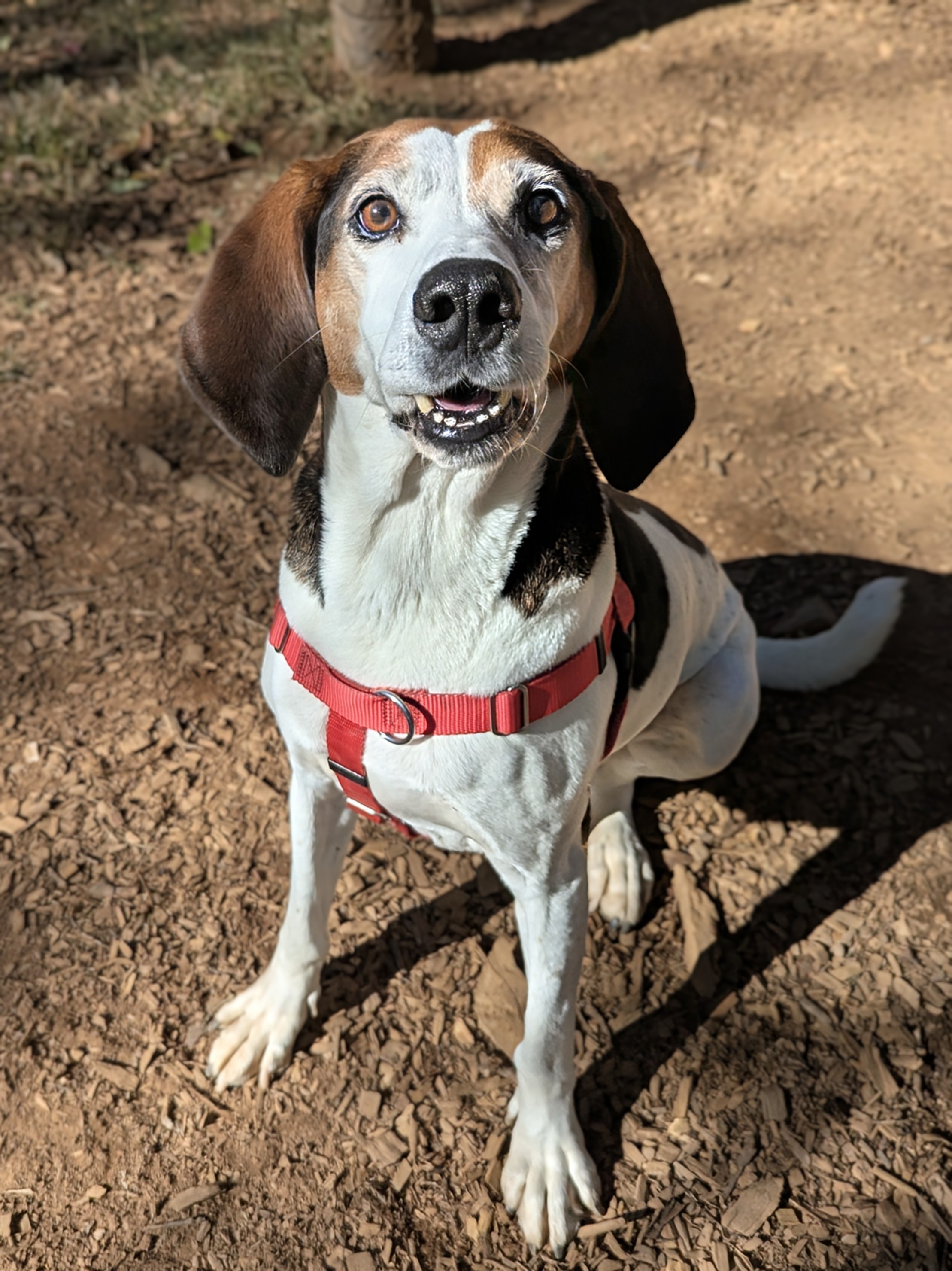 Hi, I’m Nolan — a joyful bundle of happiness and affection who loves nose rubs and nonstop fun! I’m an energetic dog who thrives on long walks, playing tug of war, and having a big yard to roam. I enjoy leash walks and like to set the pace and direction, staying true to my hound dog roots. I prefer calm and quiet surroundings, so a peaceful neighborhood or serene block would be ideal for me. I’m best suited for an adult-only home with an experienced owner who can give me their full attention. With patience and understanding, I’ll be a loyal companion who will never leave your side.