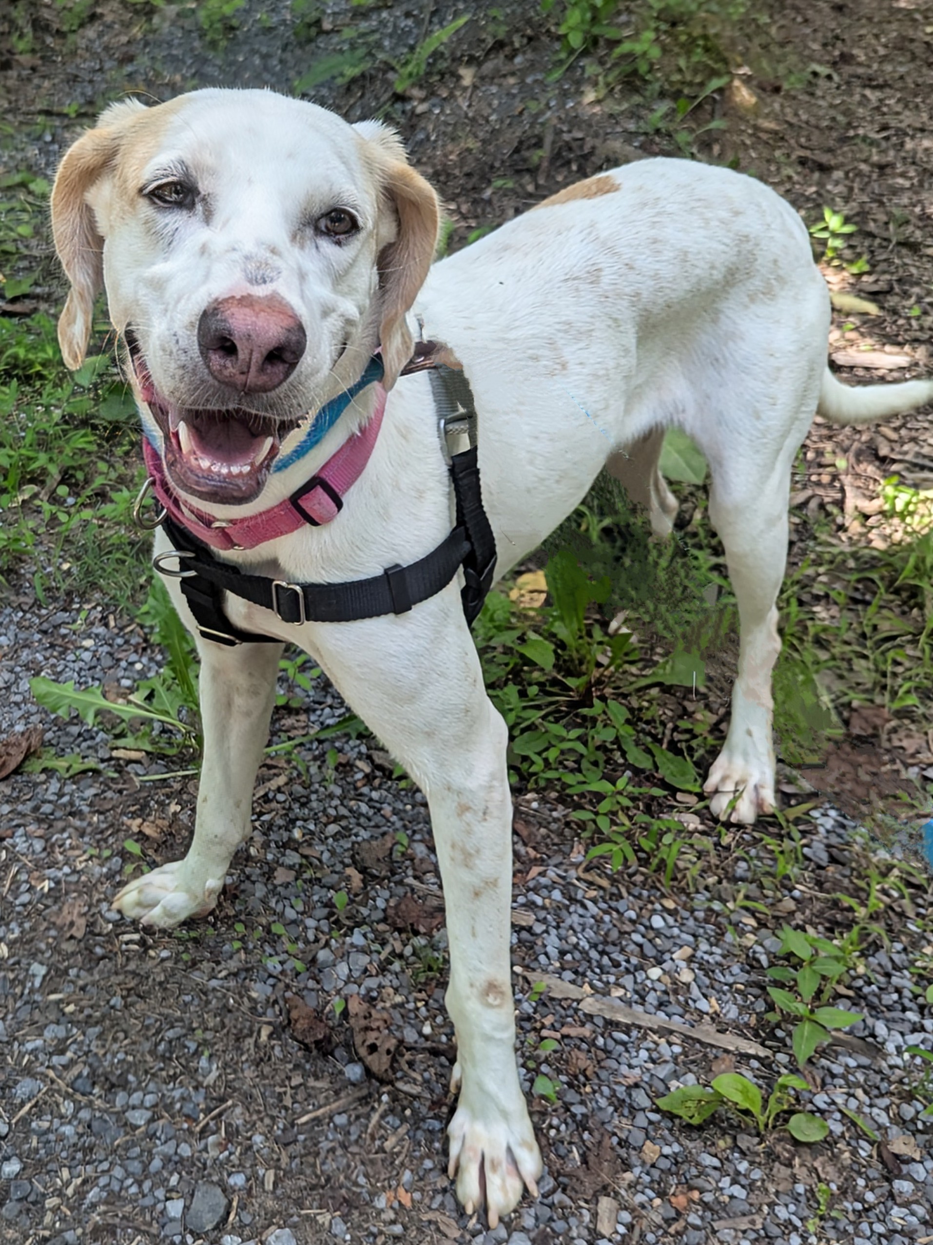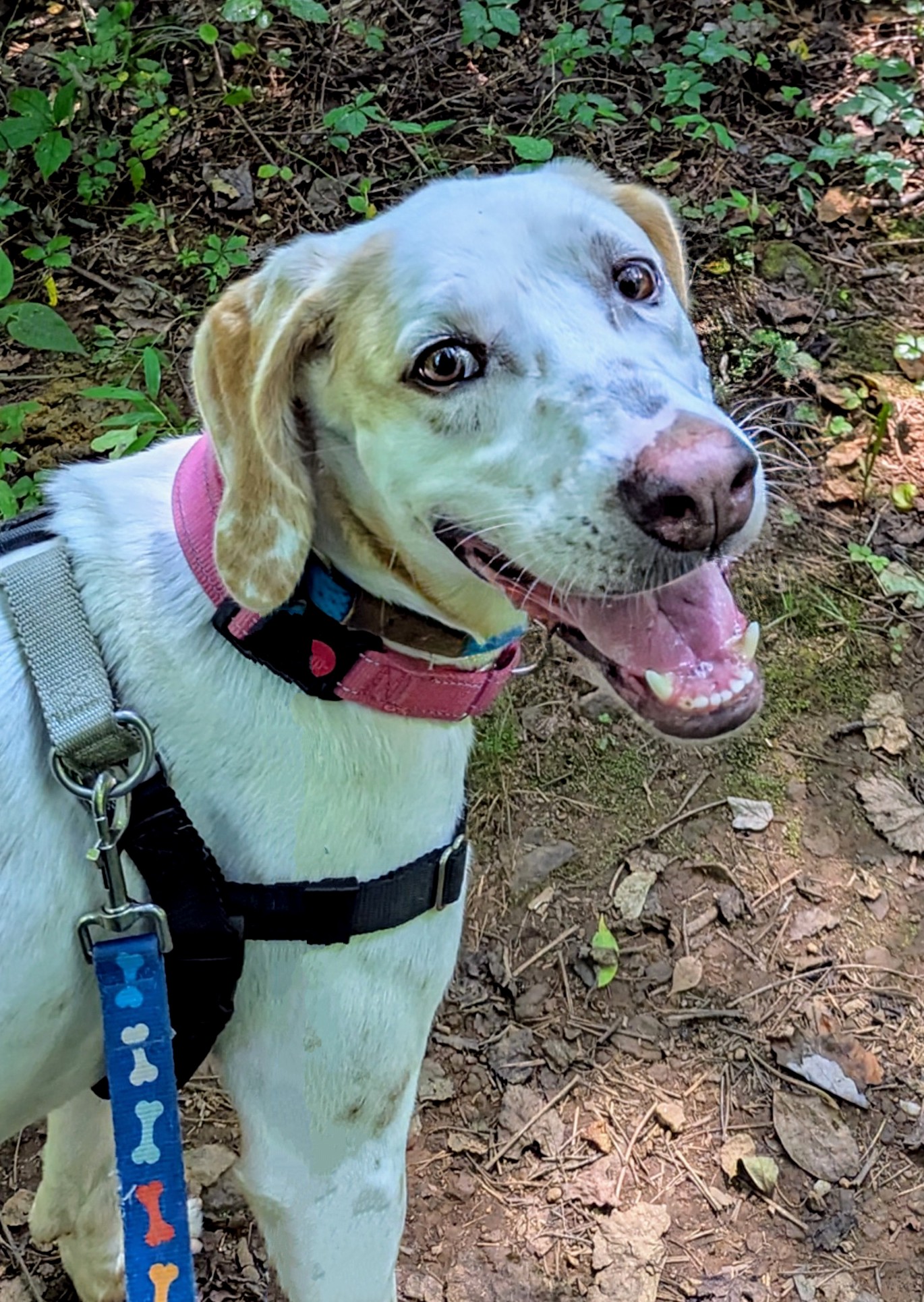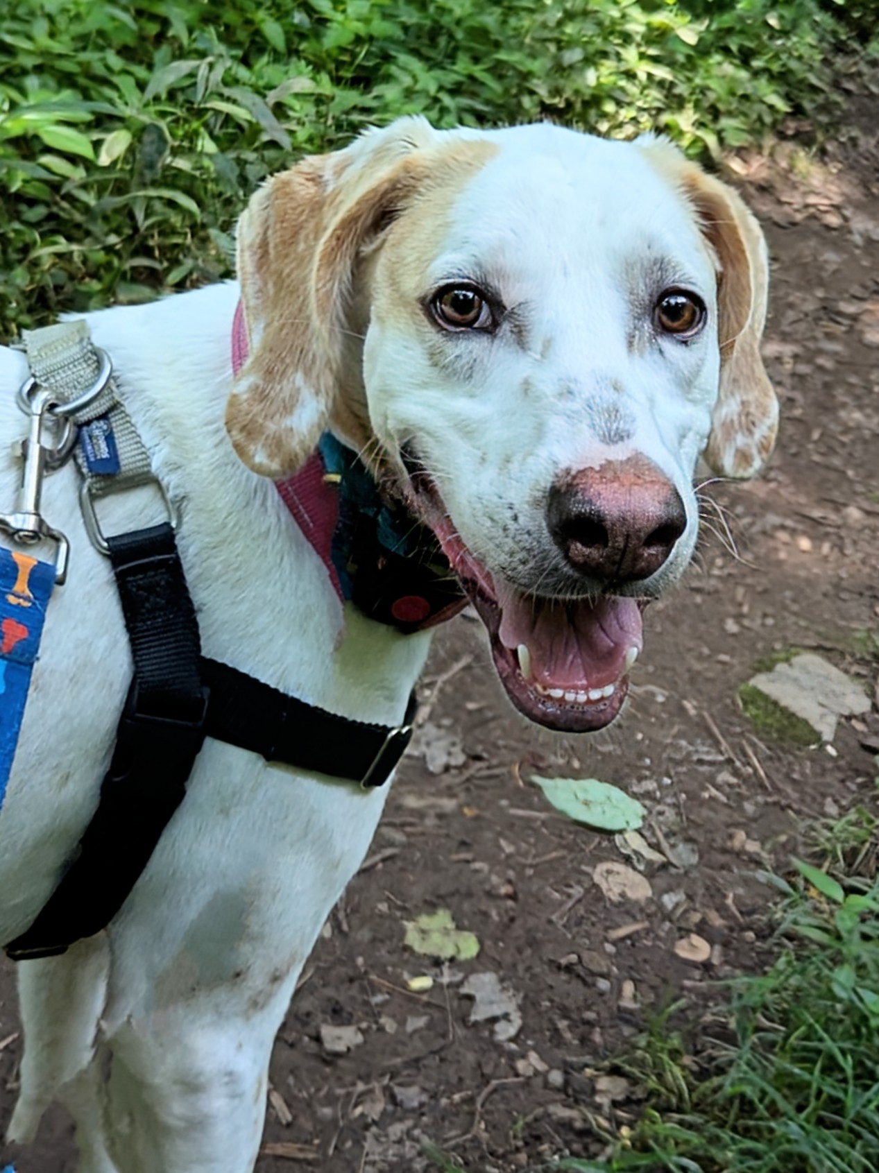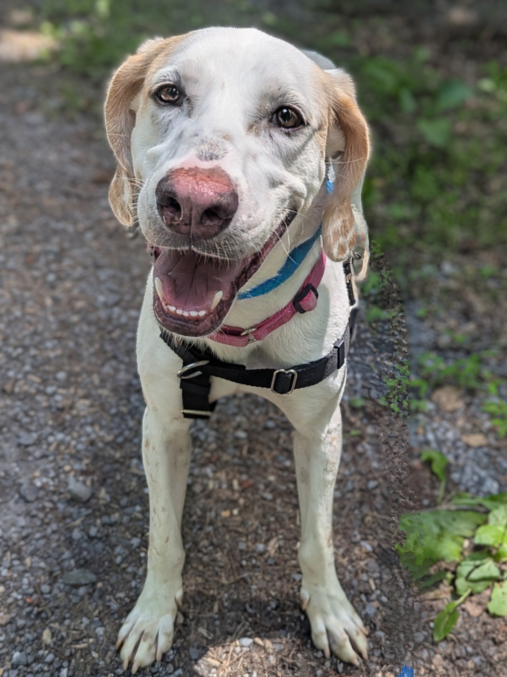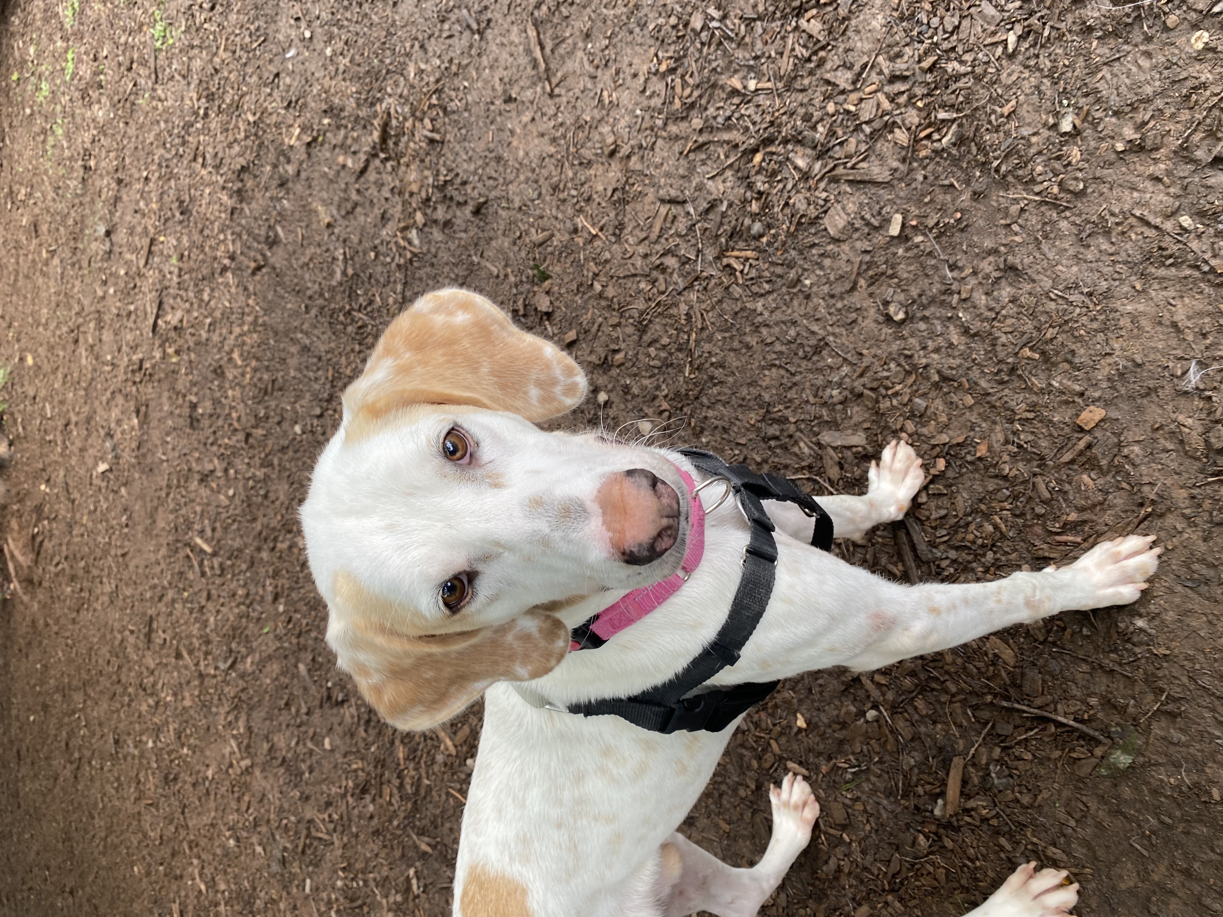 Once I feel comfortable, I start to blossom — on the trails, I light up! I’ll bounce along happily, nose to the ground, following every interesting scent (just don’t try to reroute me… I’m very committed to the path I choose!). I may plant my feet or go into full stubborn toddler mode, but if you jog with me, I’m all in.